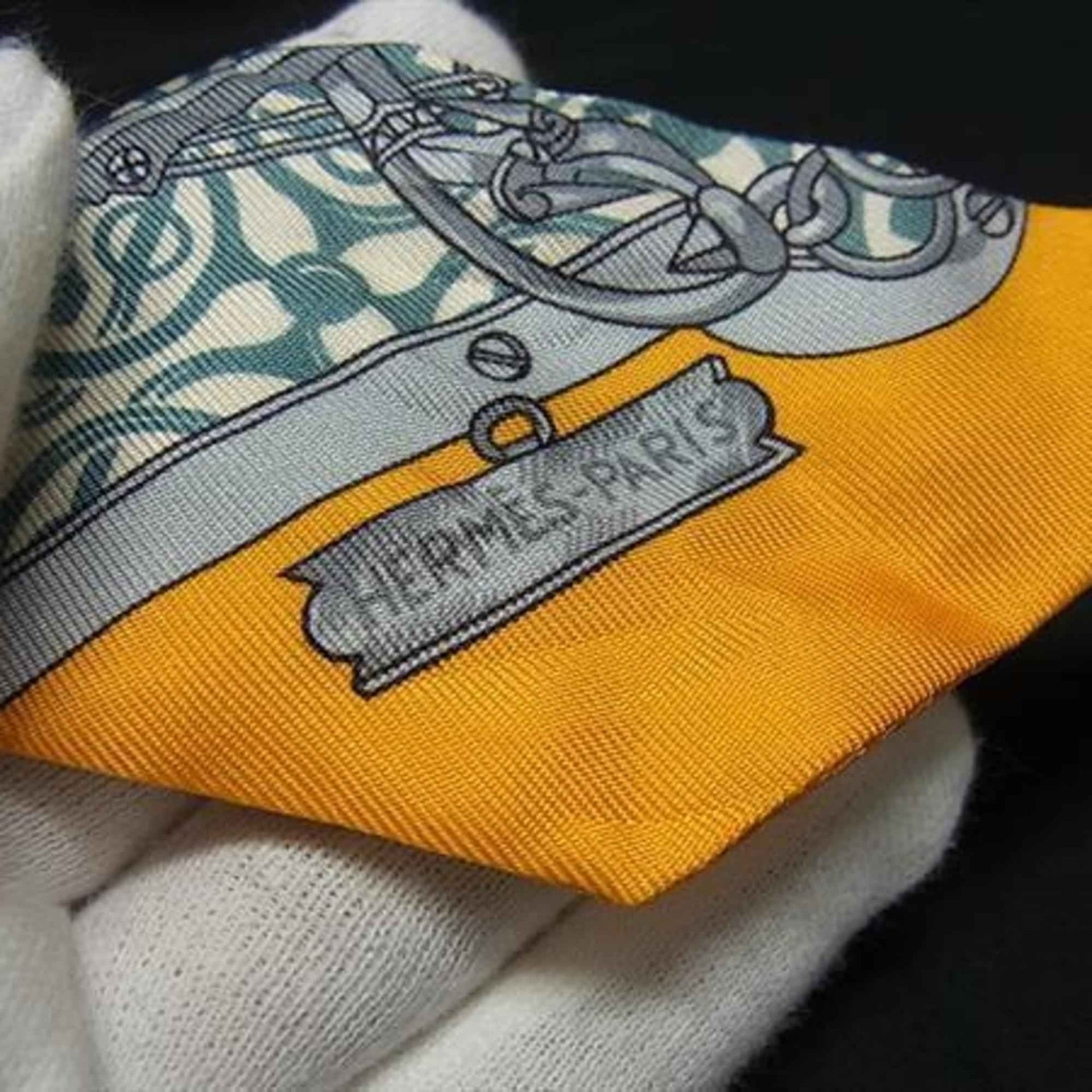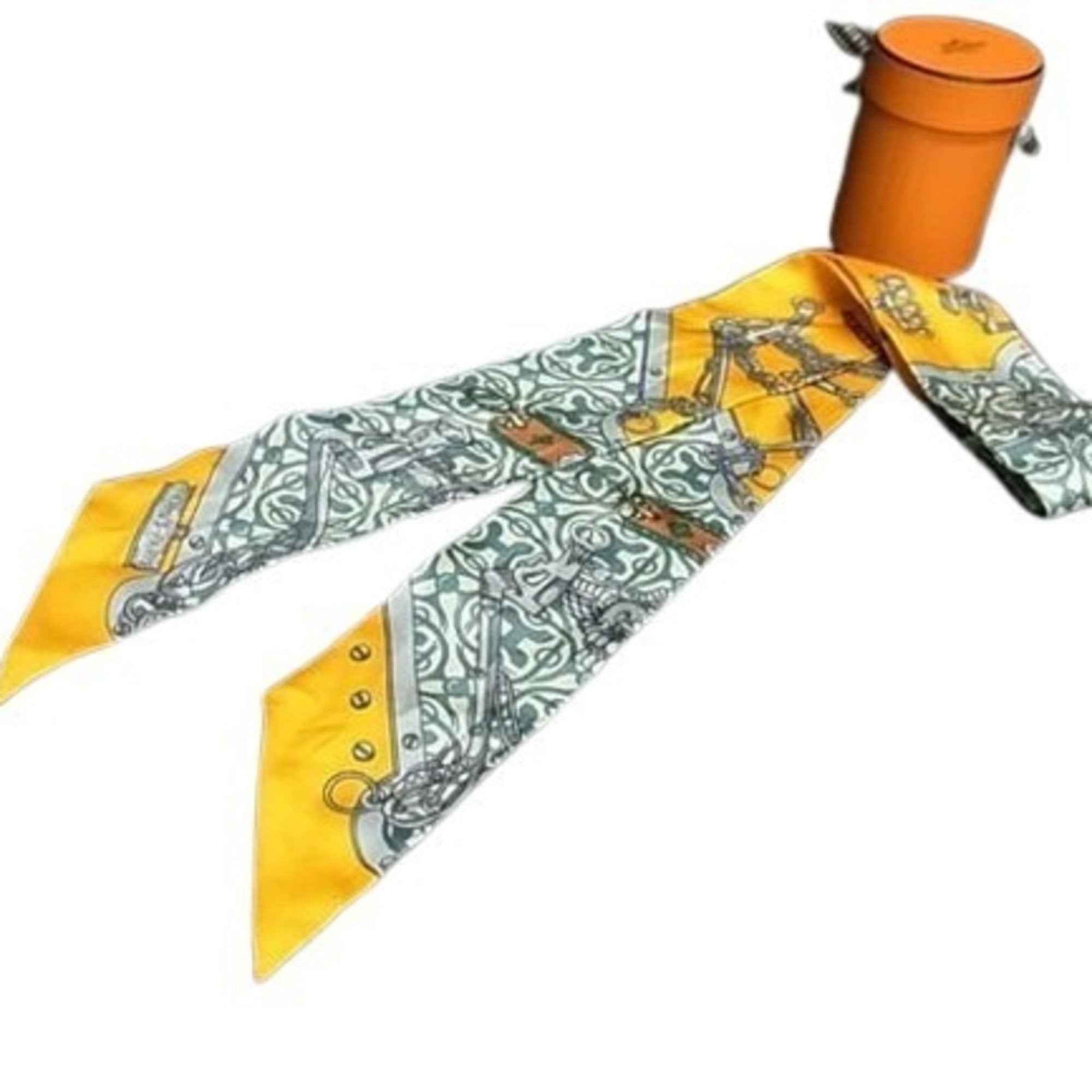 HERMES MORS ET GOURMETTES REMIX Twilly Scarf with Bit and Chain - Yellow Multicolor, 100% Silk, Women\'s Ribbon