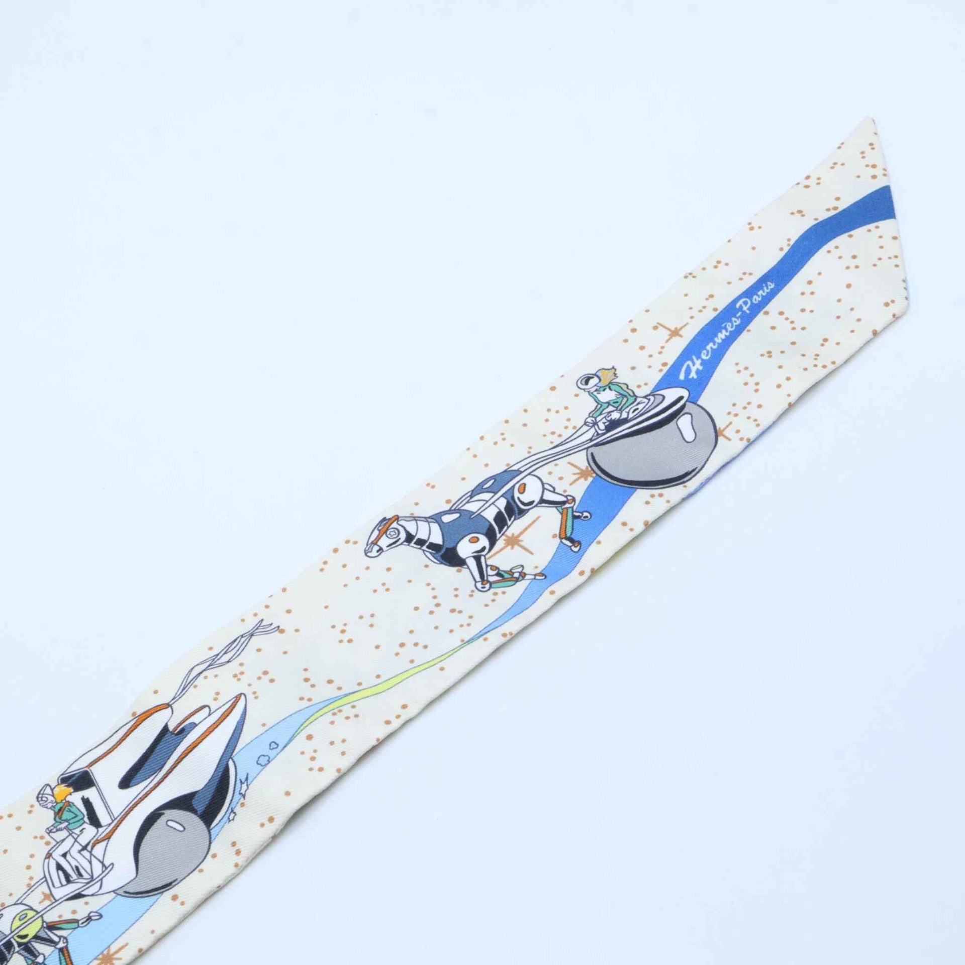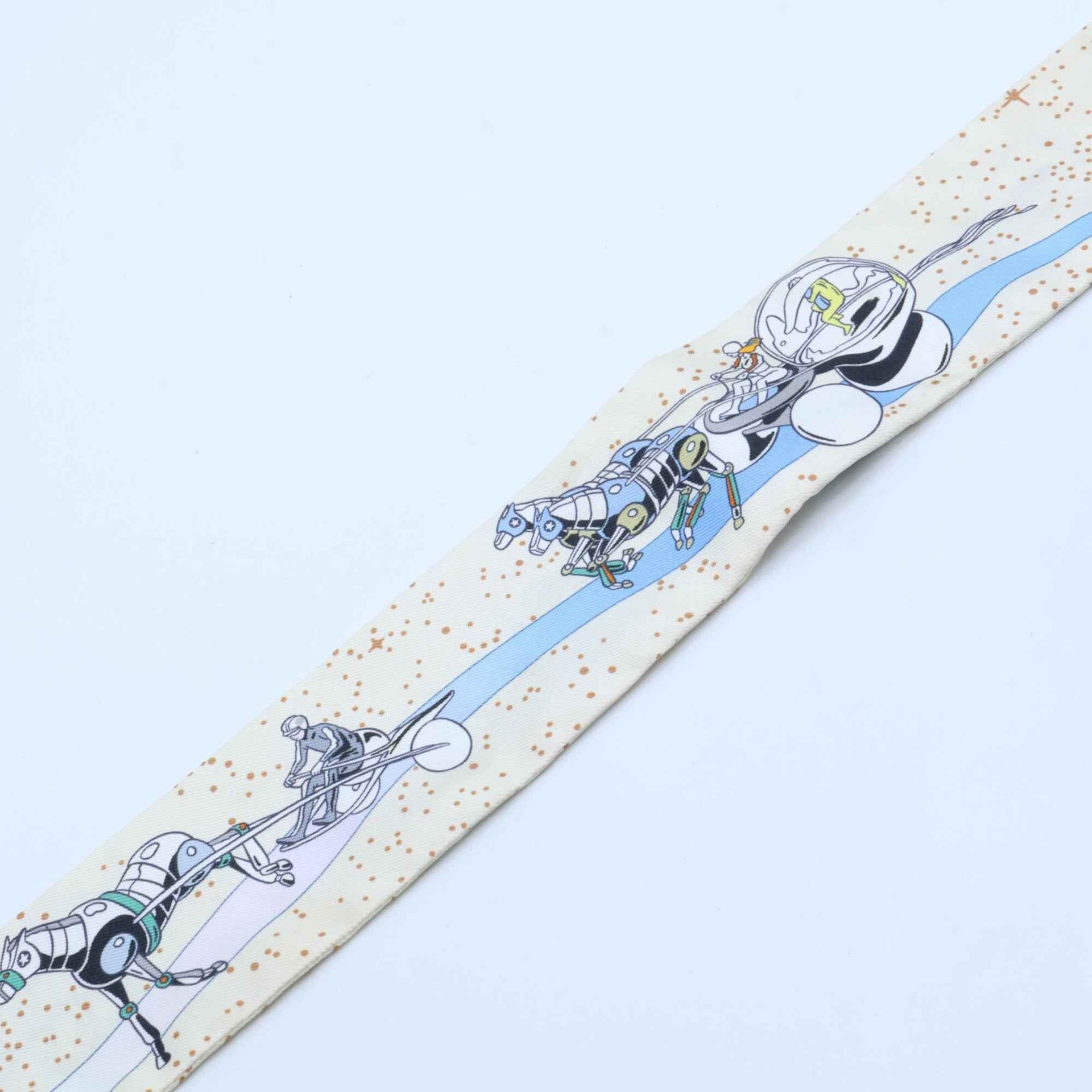 HERMES Space Derby 100% Silk Twilly Scarf White Women\'s
