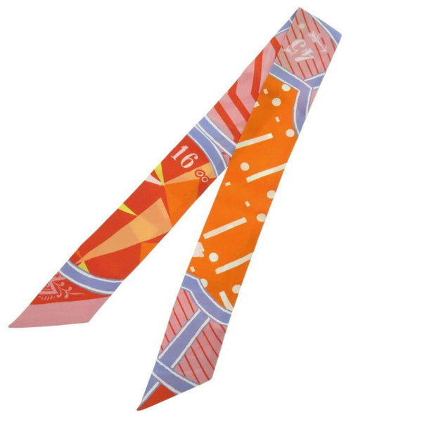 Hermès Twilly JEU DE SOIE UNIFORME Silk Game Scarf in Orange and Pink (1291HERMES)