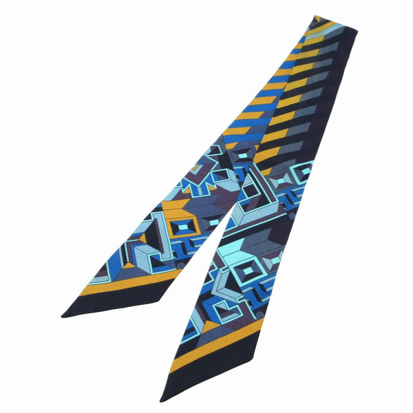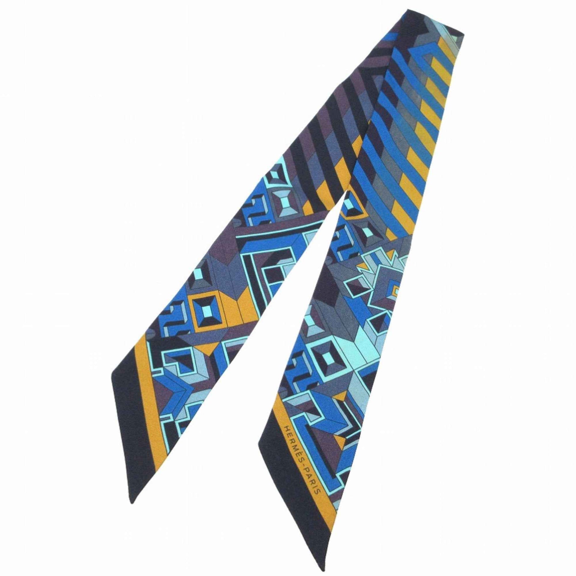 Hermès Twilly LE FIL D\'ARIANE Scarf/Muffler Silk Blue/Jaune/Black 1118 HERMES