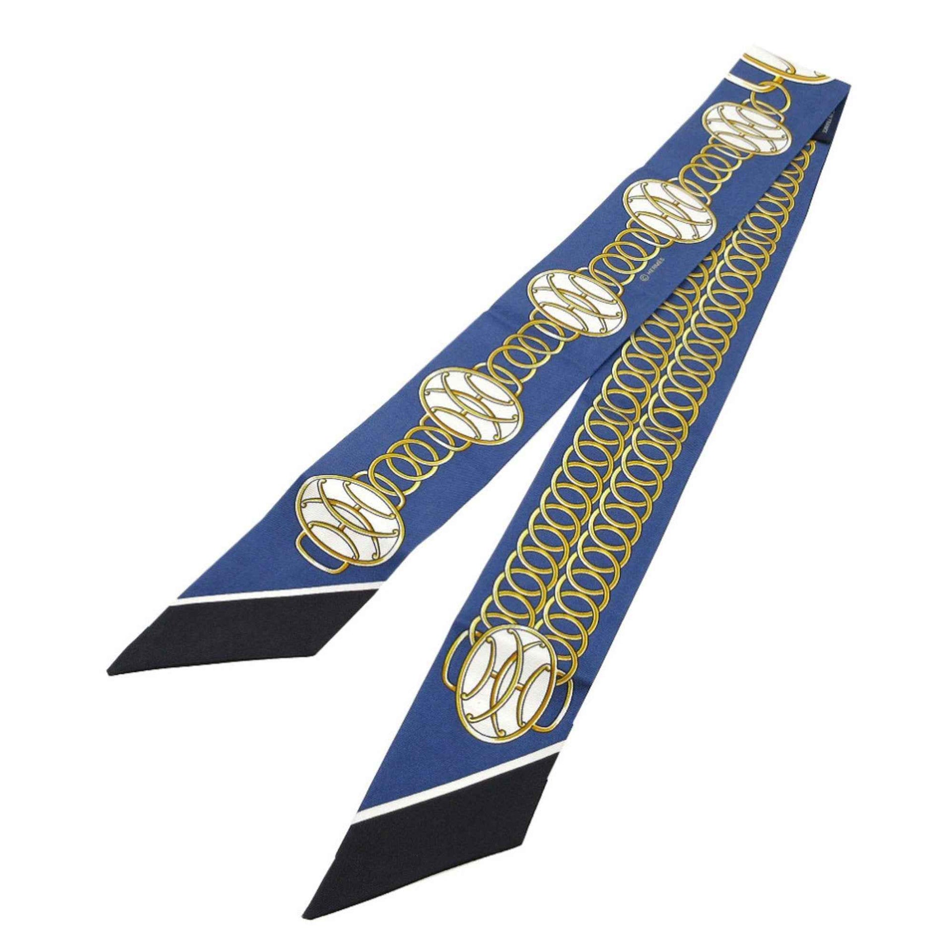 Like new Hermès Twilly Lift Profile Scarf/Muffler in Silk, Marine/Noir/Gold, 1286 HERMES