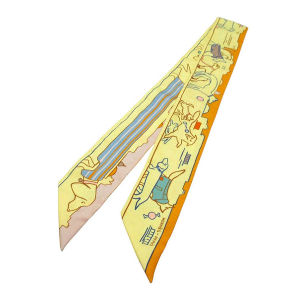 Like new Hermès Twilly Parisian Dog Scarf/Muffler Silk Yellow/Orange 0170 HERMES