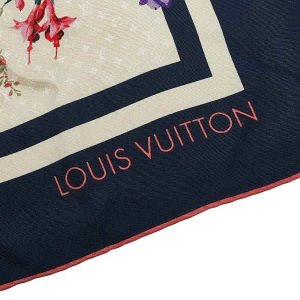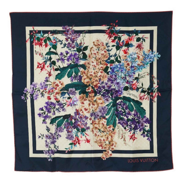 Louis Vuitton Floral Print Scarf, Navy and Multicolor Silk, Women\'s, LOUIS VUITTON