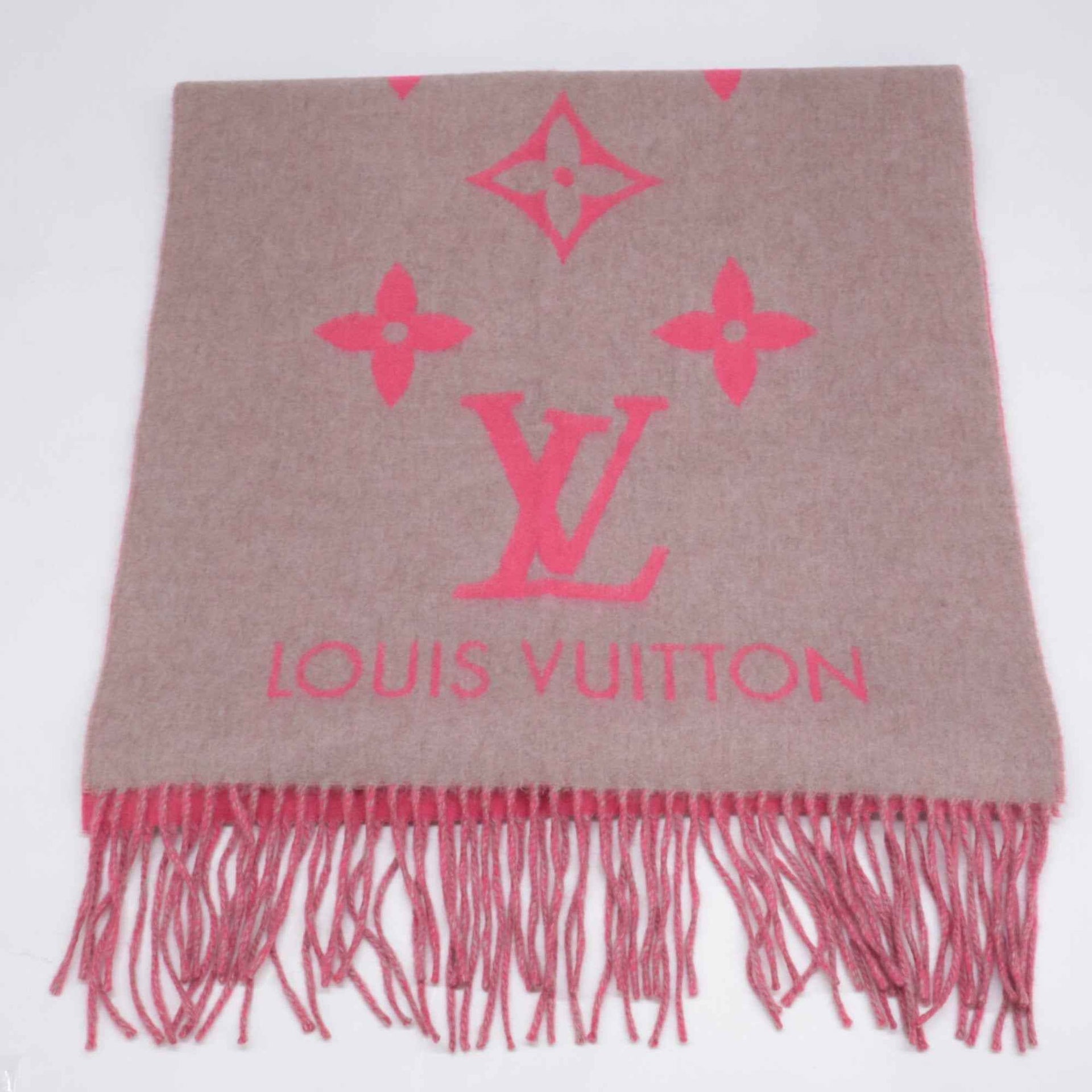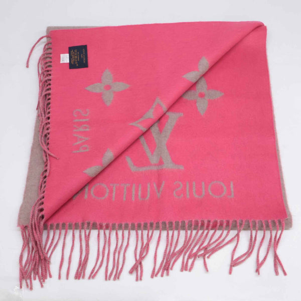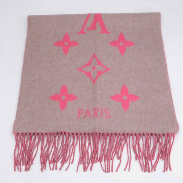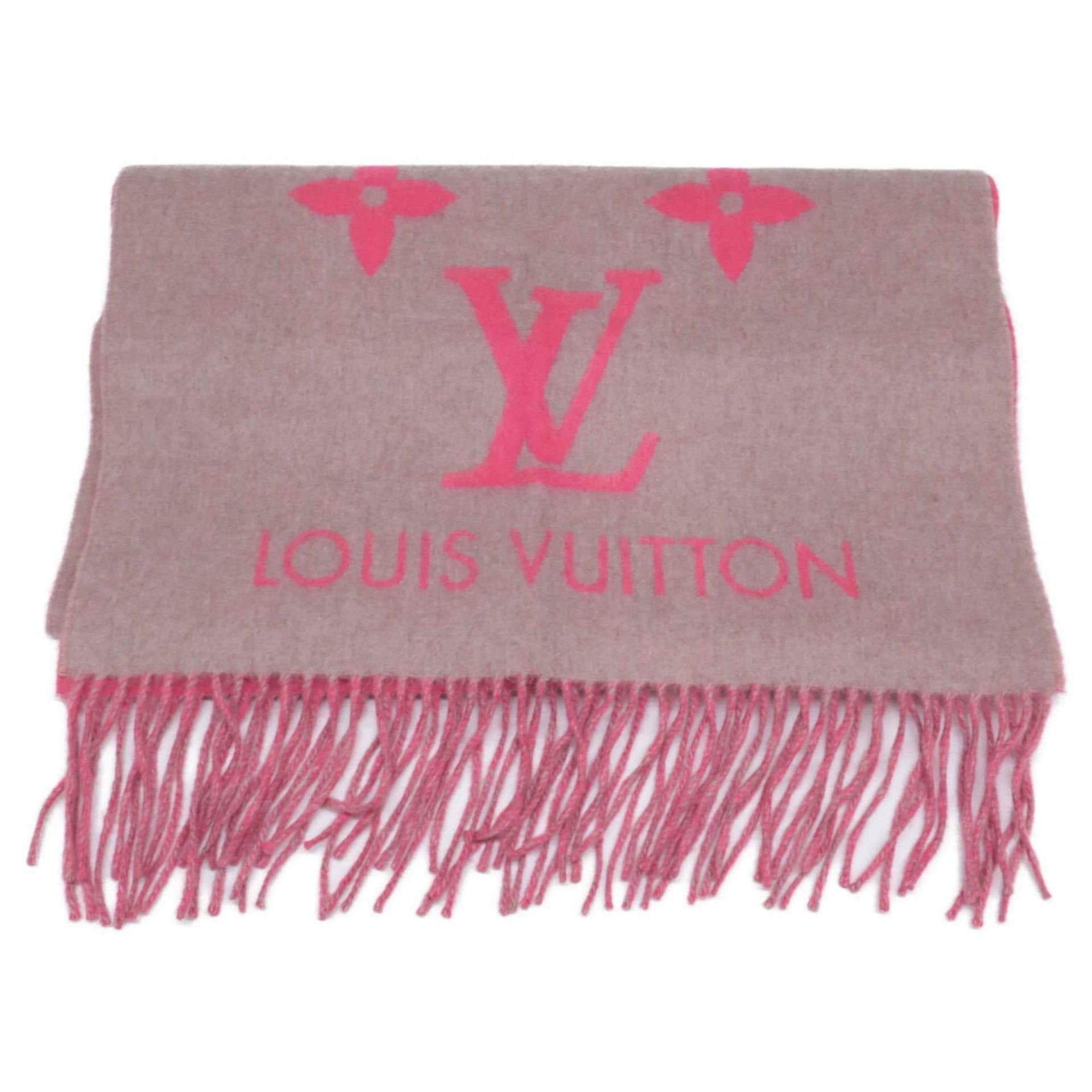 LOUIS VUITTON M70814 Monogram Echarpe Reykjavik Fringe Scarf Gray Pink Women\'s