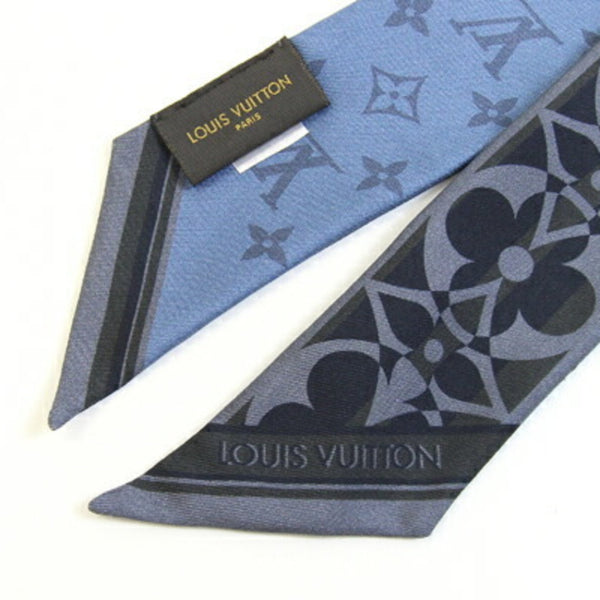 Louis Vuitton Scarf Bandeau M73078 Gray Blue 100% Silk Tie Ribbon LV LOUIS VUITTON
