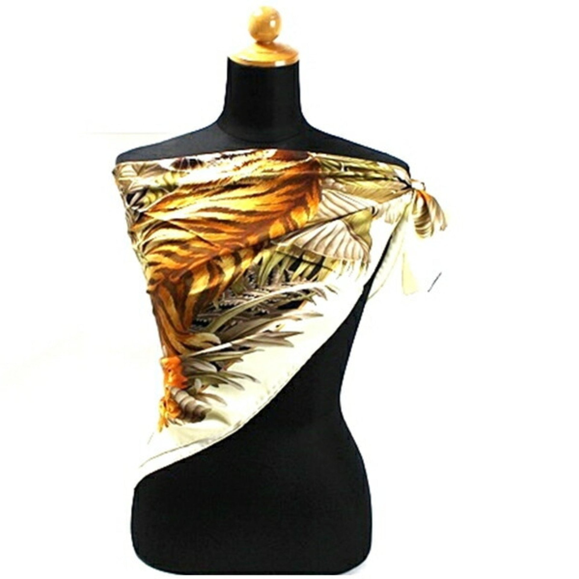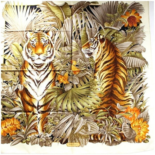 Salvatore Ferragamo Silk Scarf Muffler Cream Animal Print Women\'s
