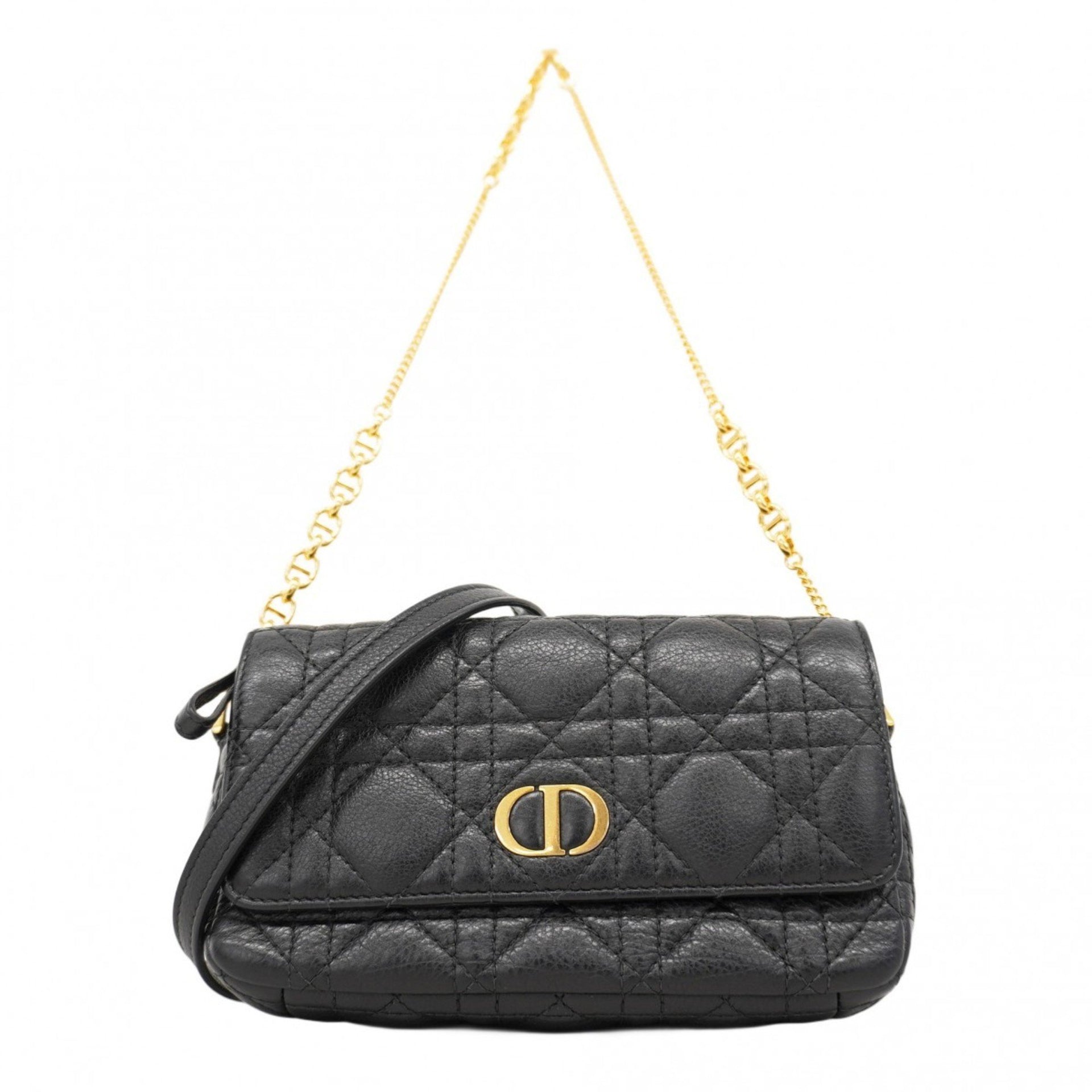 Christian Dior Cannage Leather Handbag, Black, 2-Way Bag for Women