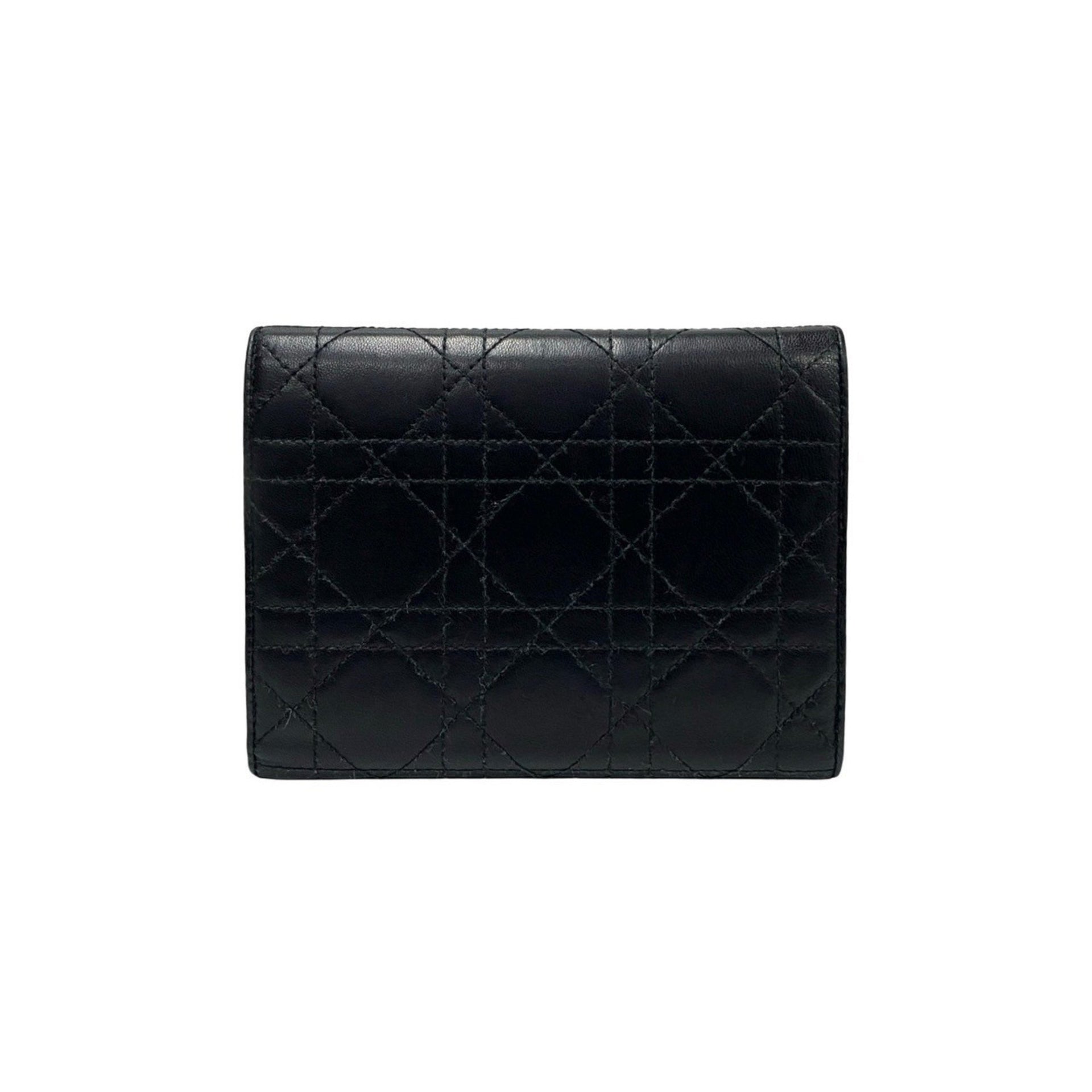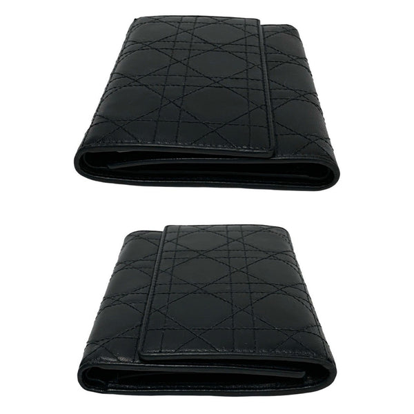 Christian Dior Cannage Leather Tri-fold Wallet with Bill Compartment and Coin Purse, Black, 73237