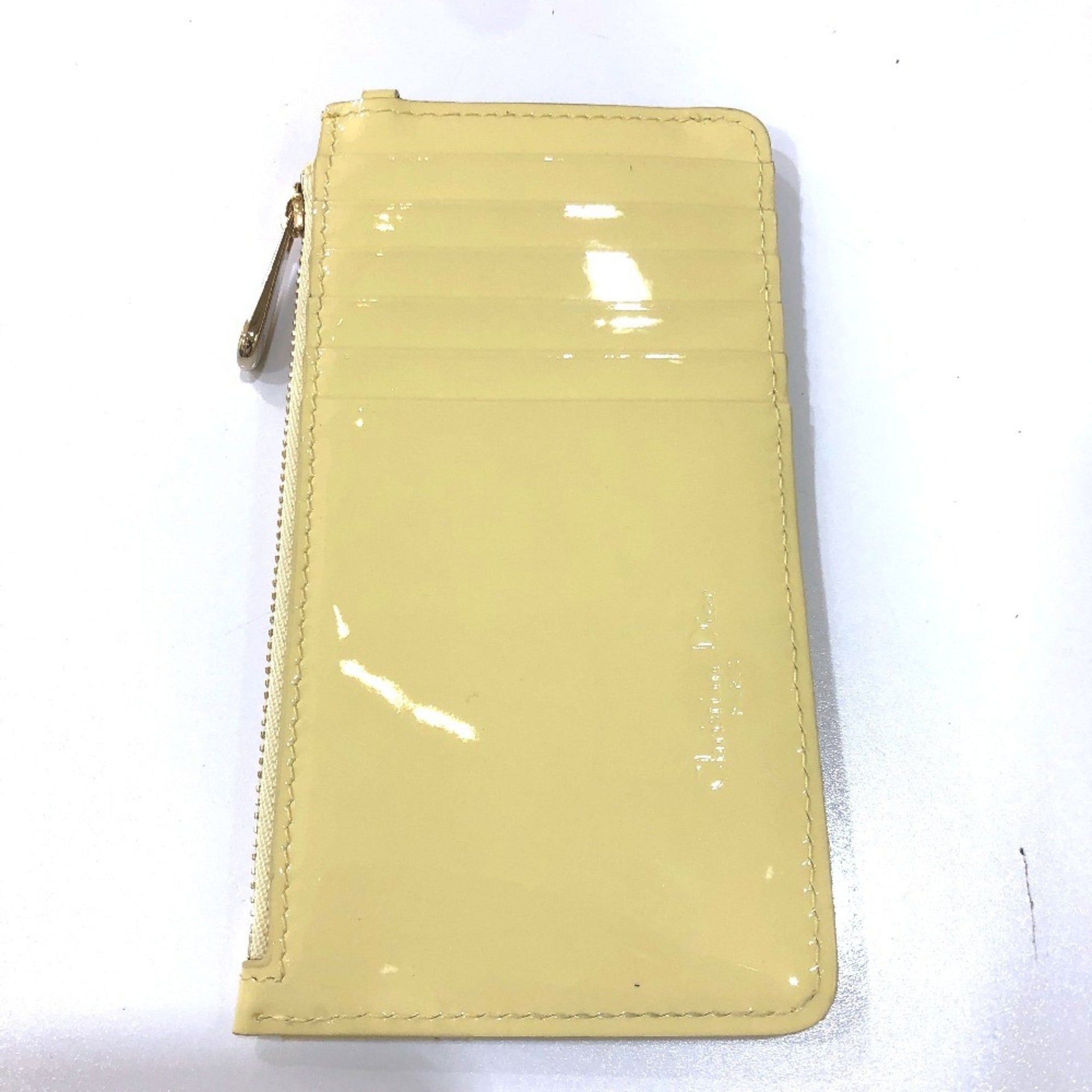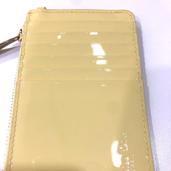 Christian Dior Dior Cannage Card Case, Business Holder, Patent Leather Coin Enamel, Women\'s, Beige
