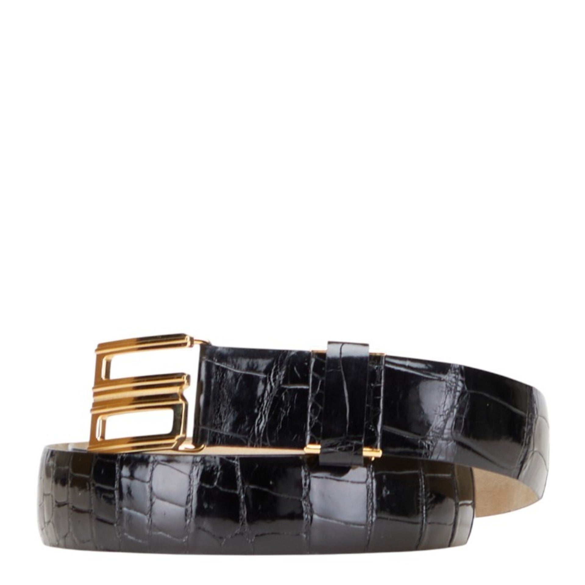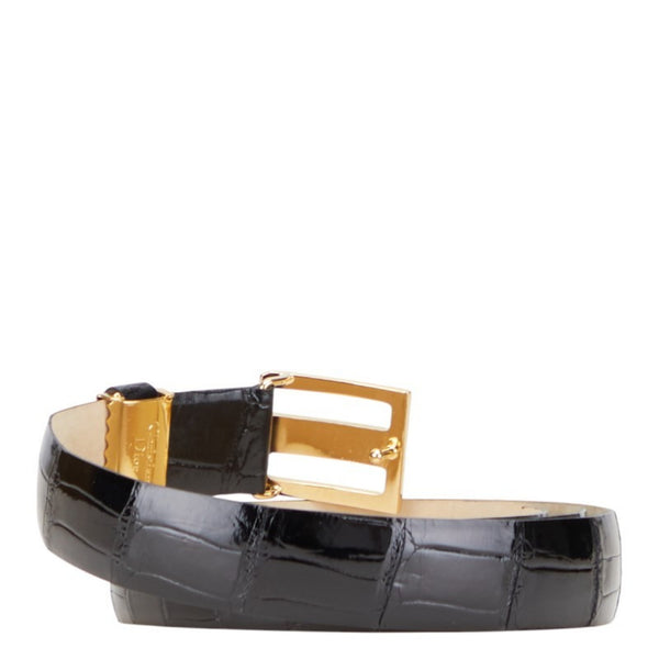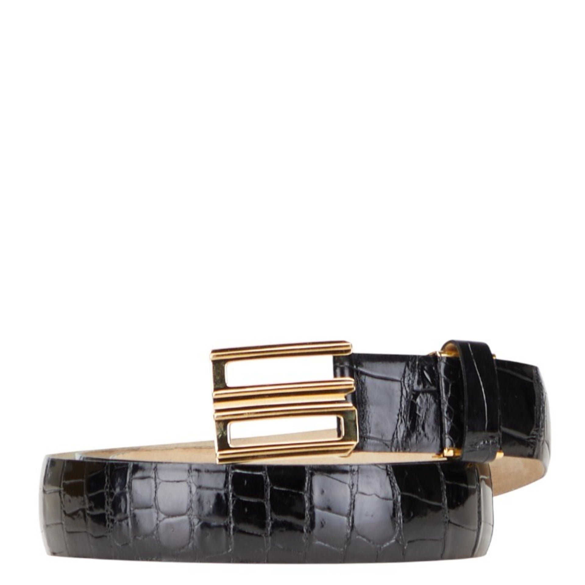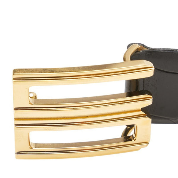 Christian Dior Dior CD Buckle Crocodile Embossed Belt Black Leather Women\'s