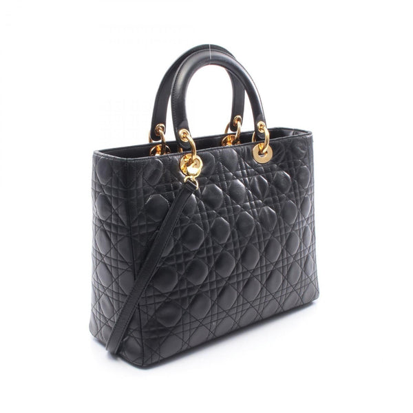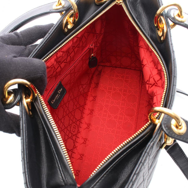 Christian Dior Dior Lady Large Cannage Handbag, Leather, Women\'s, Black