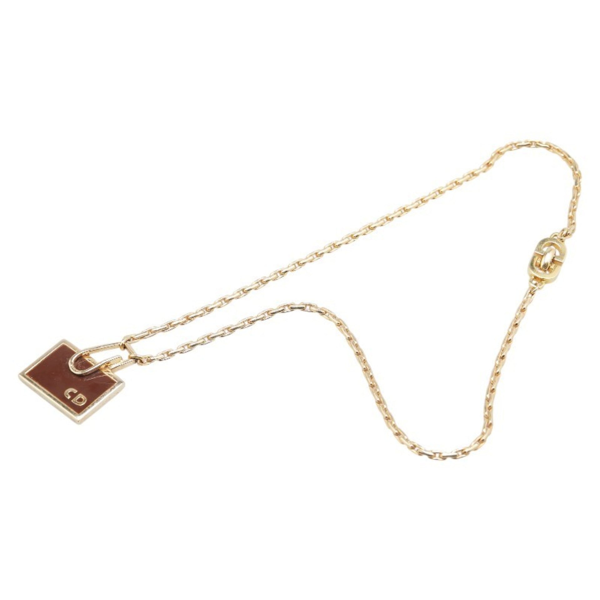 Christian Dior Dior logo plate chain pendant necklace in gold and brown. Women\'s.