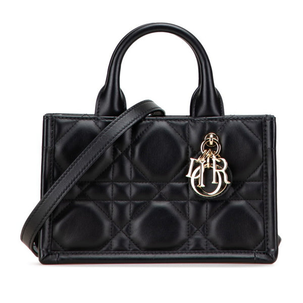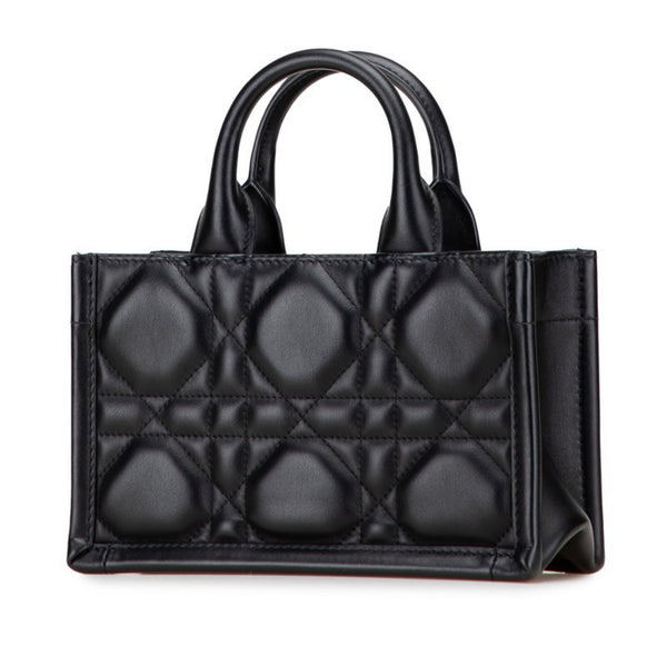 Christian Dior Dior Macrocannage Book Tote Mini Handbag/Shoulder Bag, 2-Way, Black Leather, Women\'s