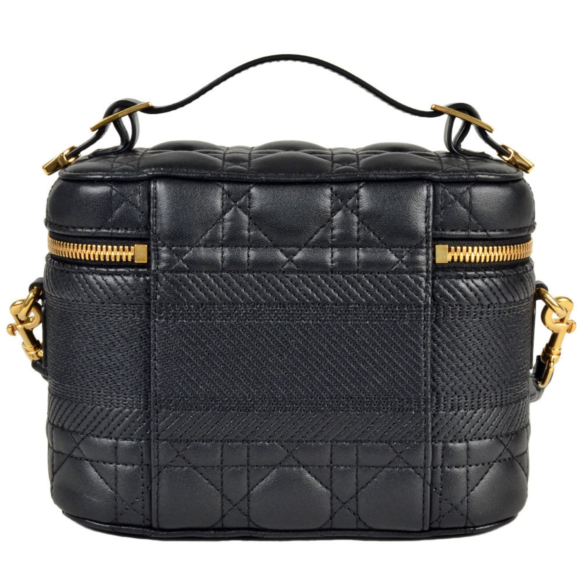 Christian Dior Dior Vanity Bag Shoulder Leather Canvas Black