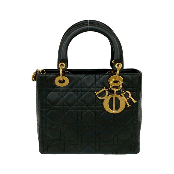 Christian Dior Lady Cannage Leather Handbag/Mini Tote Bag, Black, 08355