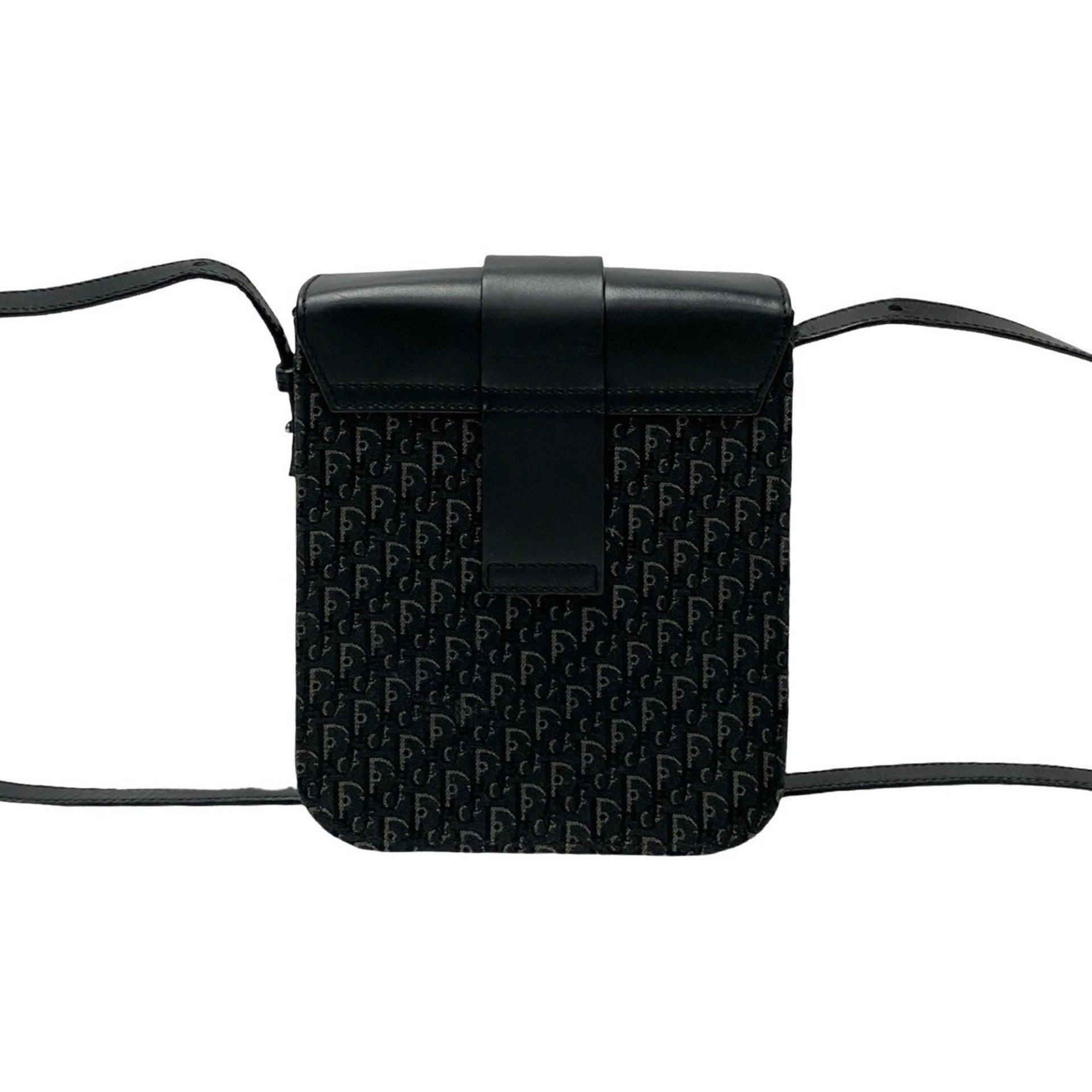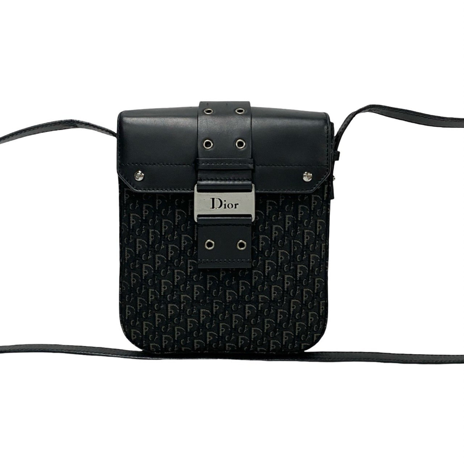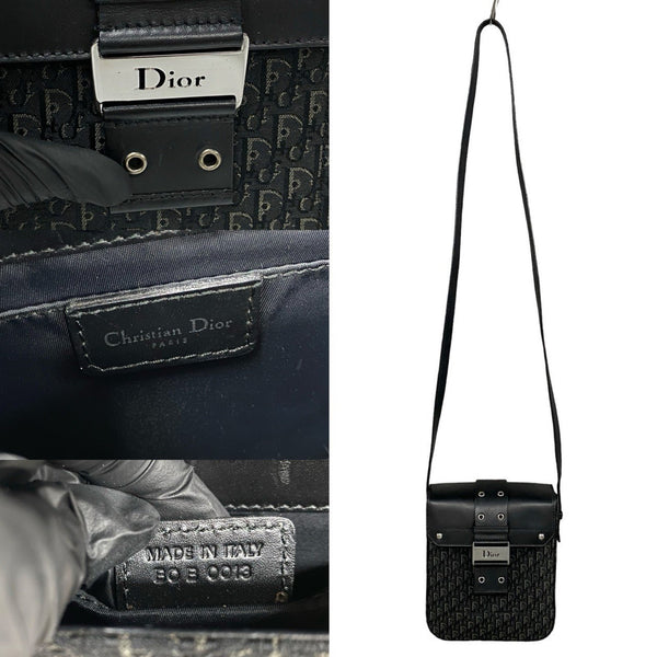 Christian Dior Street Chic Trotter Pattern Logo Hardware Leather Canvas Shoulder Bag Black 68928