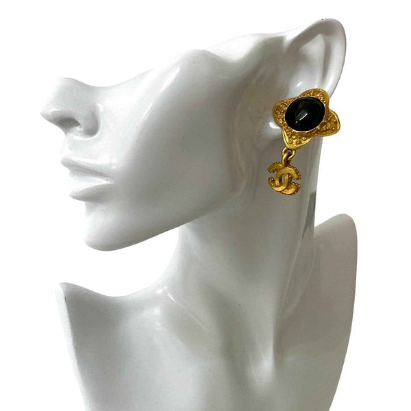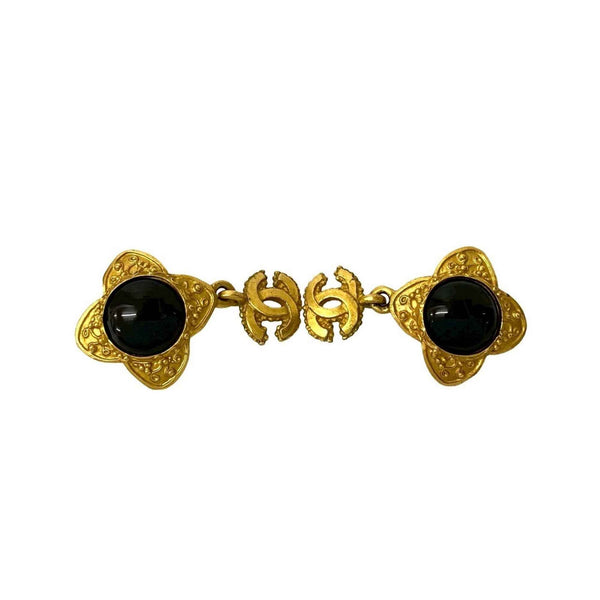 96A CHANEL Vintage Coco Mark Flower Motif Earrings and Ear Cuffs, Gold, 155-8
