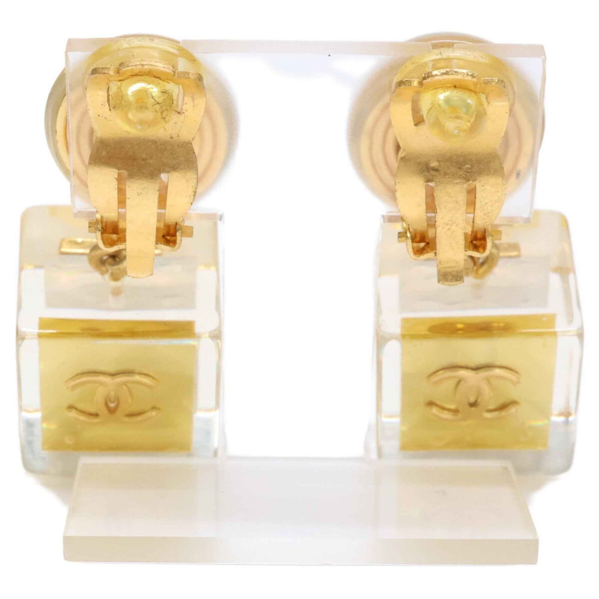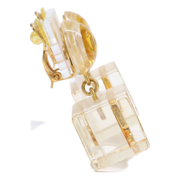 CHANEL 97P Hologram Coco Mark 5 Cube Earrings, Clear and Yellow Gold, Women\'s