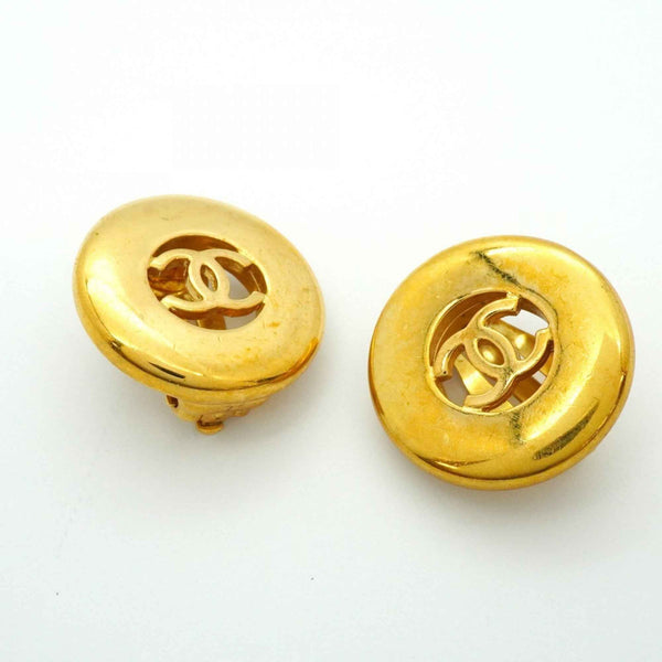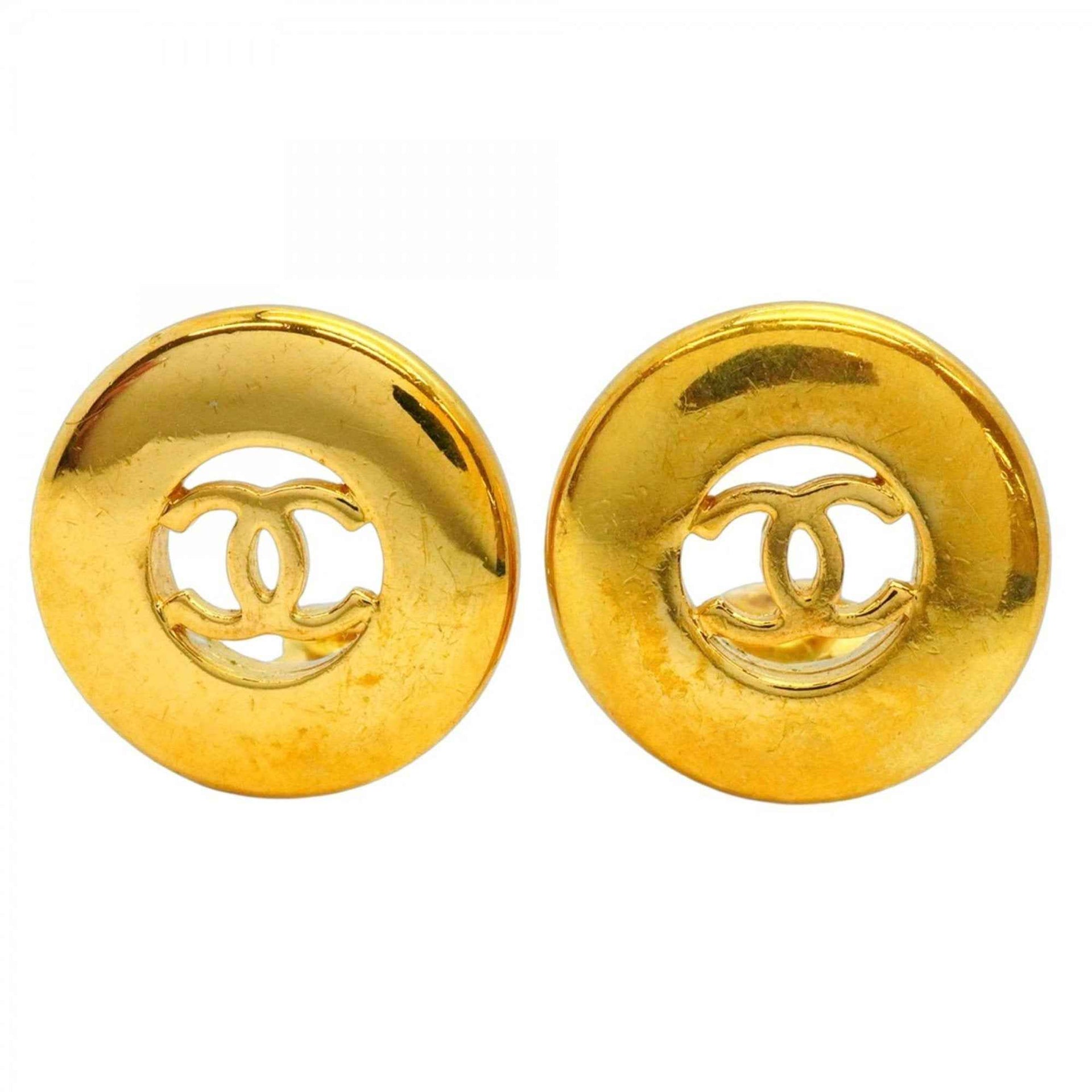 Chanel Coco Mark Circle Earrings, GP Plated Gold, Women\'s, P1342656