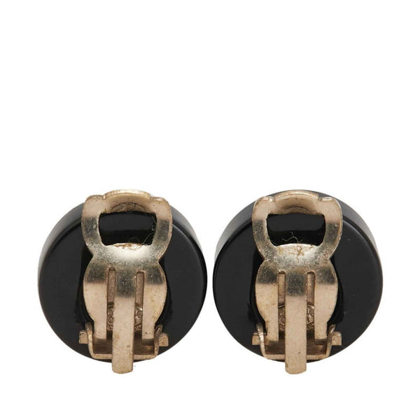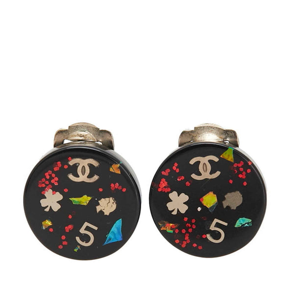 CHANEL Coco Mark Mademoiselle Clover 5 Round Earrings in Black and Multicolored Plastic with Plated Design for Women