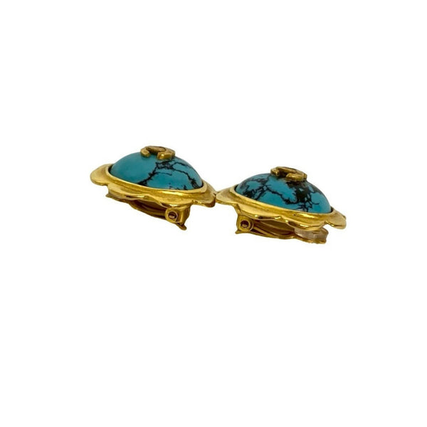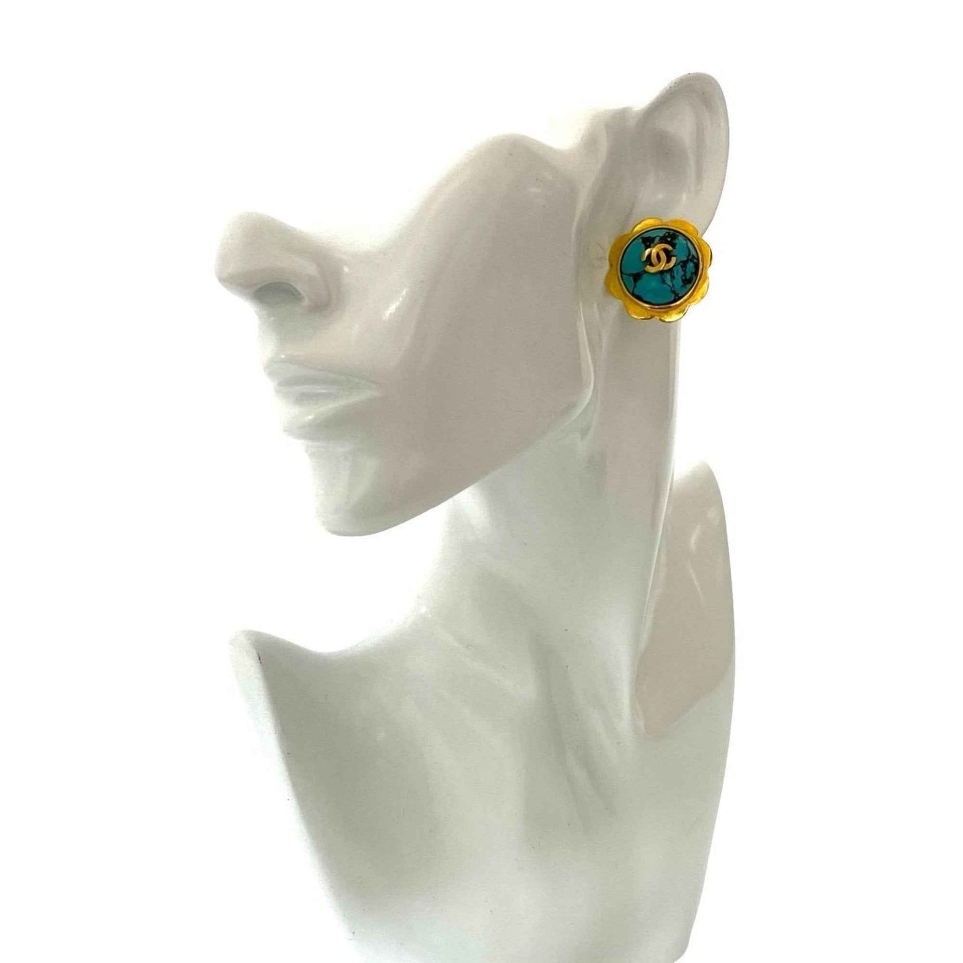 CHANEL Coco Mark Marble Stone GP Earrings, Gold and Turquoise, 101-5
