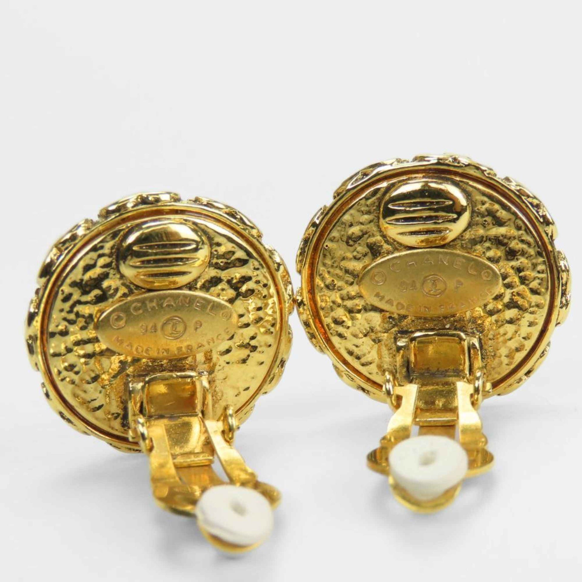 Chanel Coco Mark Metal Earrings with Faux Pearl and Gold Plated 94P Women\'s CHANEL