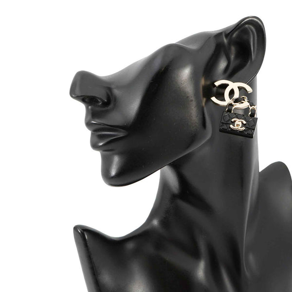 CHANEL earrings with Coco Mark and Matelasse bag motif, black