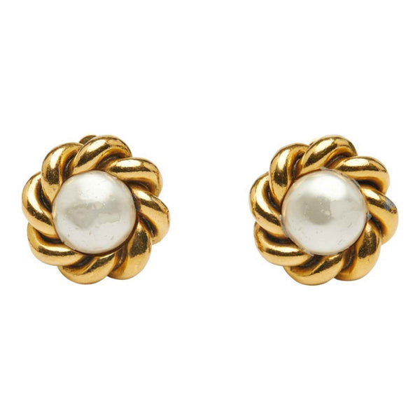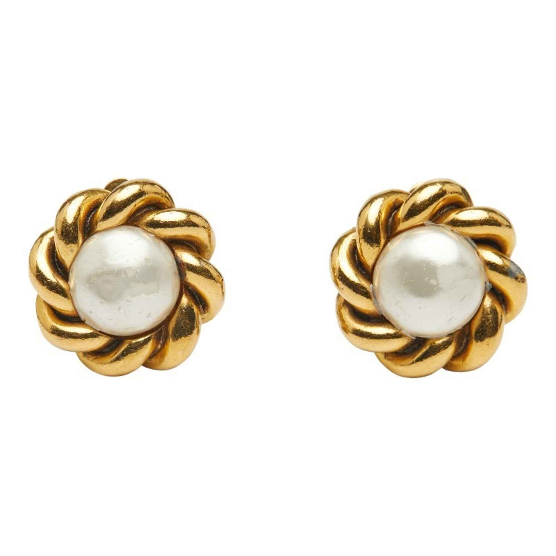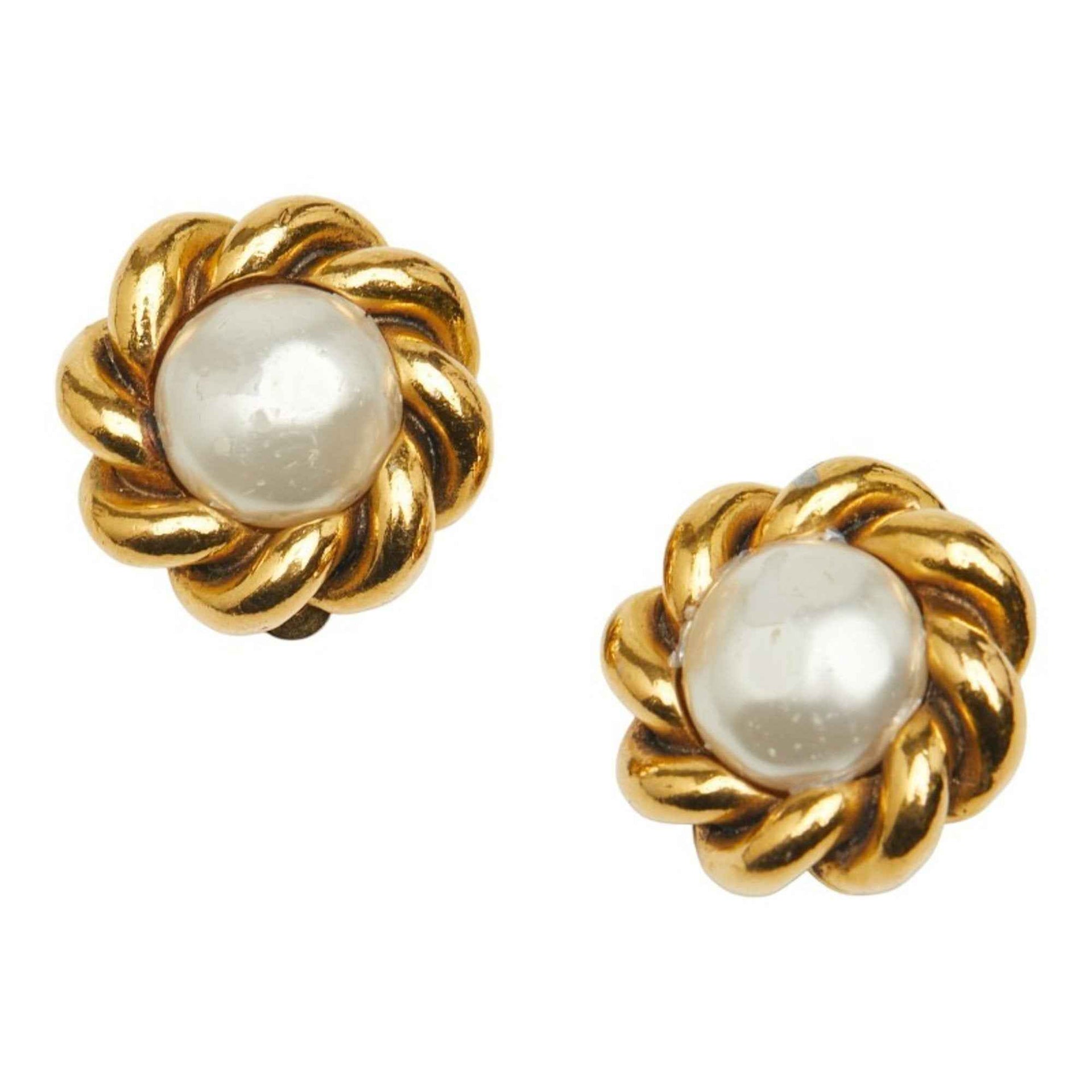 CHANEL Round Earrings, Gold Plated, Faux Pearl, Women\'s