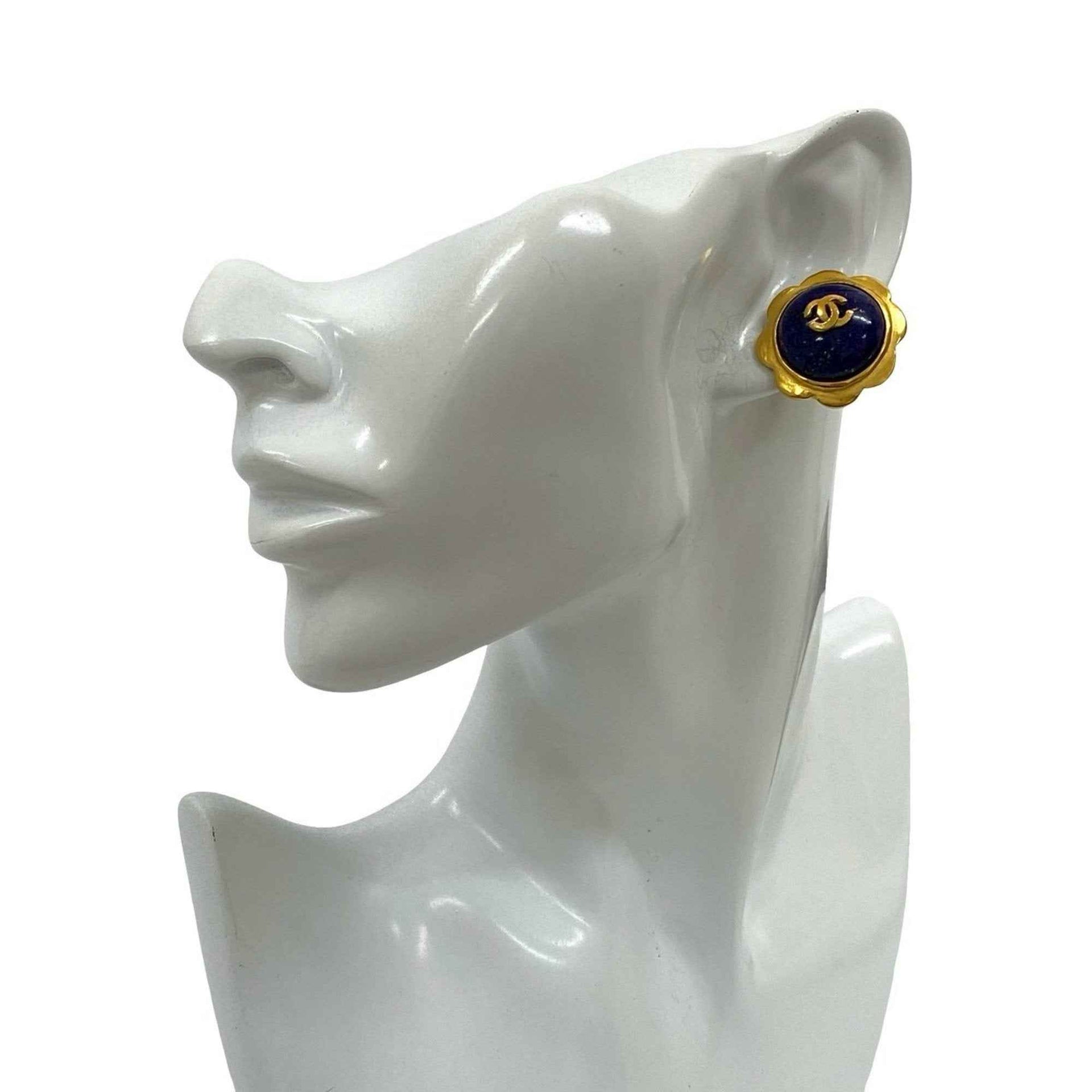 CHANEL Vintage Coco Mark Motif Earrings and Ear Cuffs in Gold Blue 87139