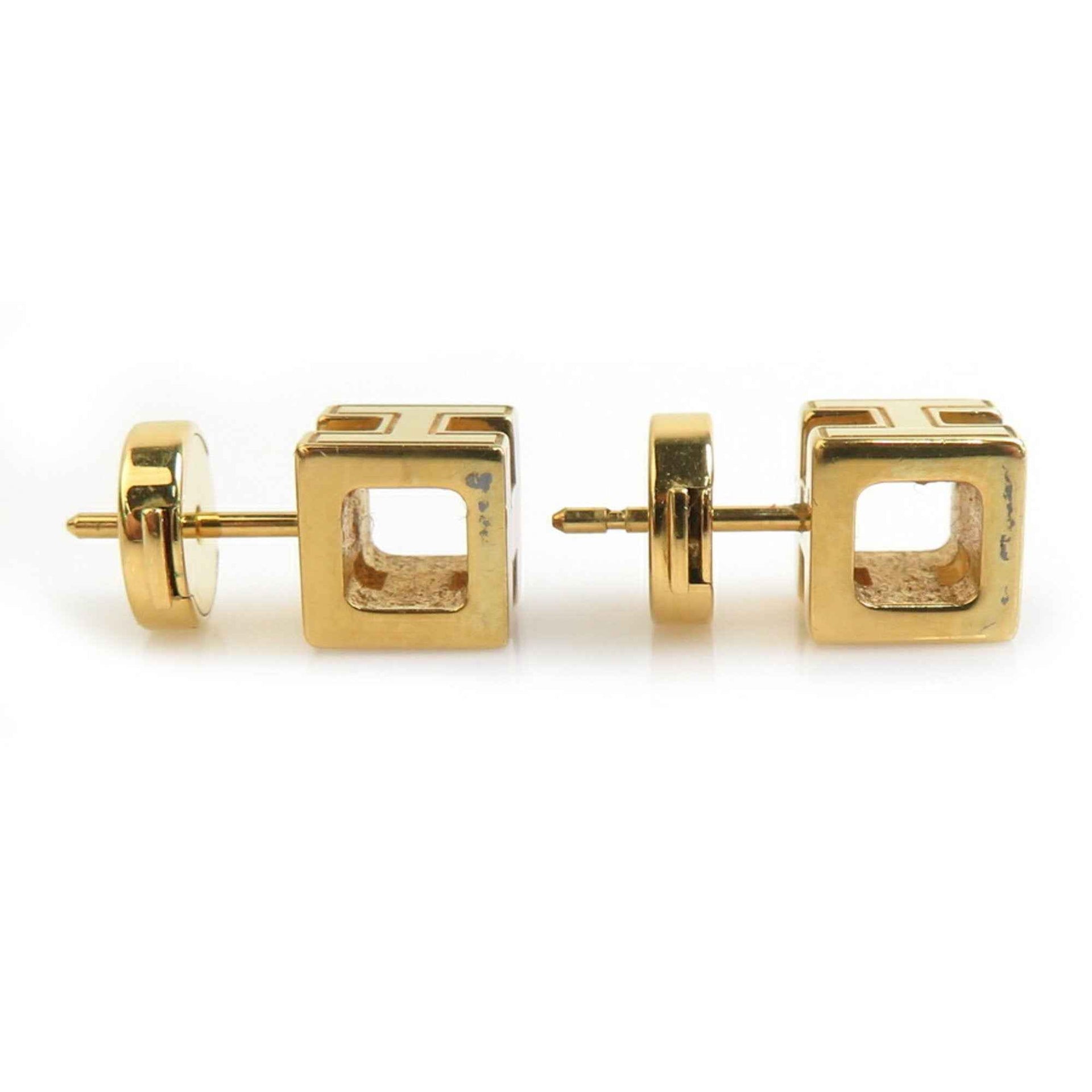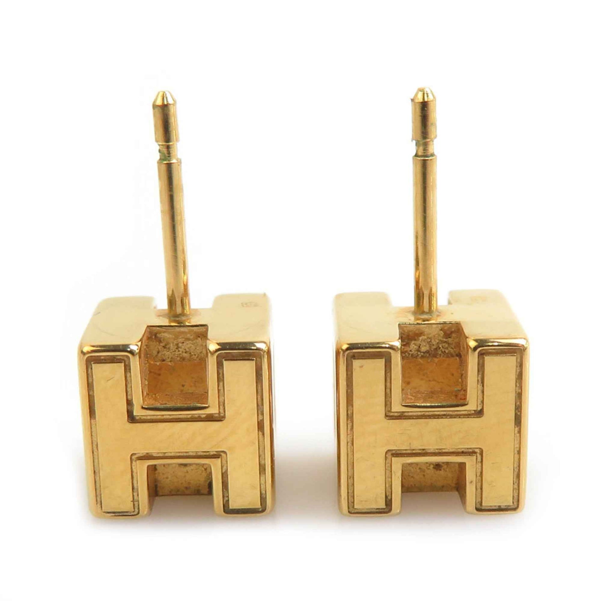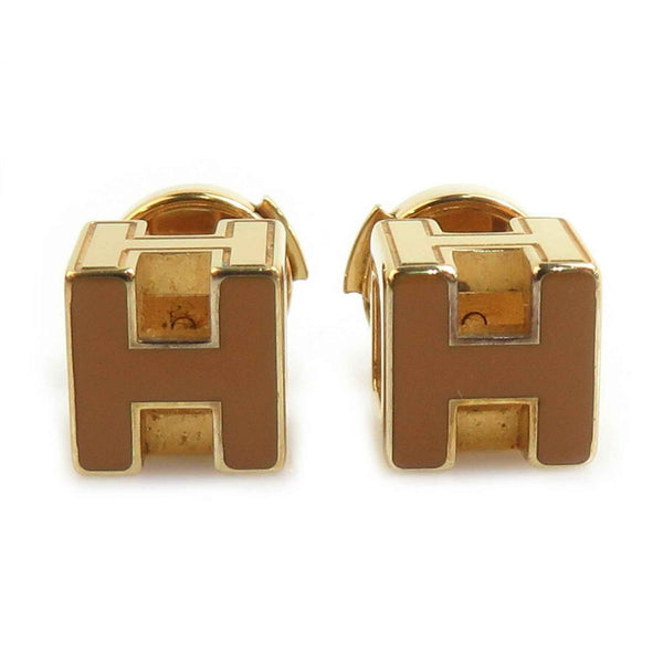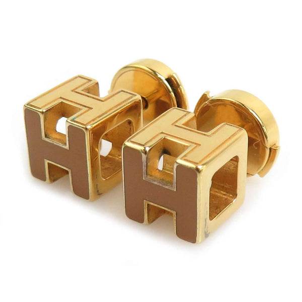 Hermes Hermès H-Cube Metal Enamel Earrings in Gold and Orange Brown, Women\'s, e61026i