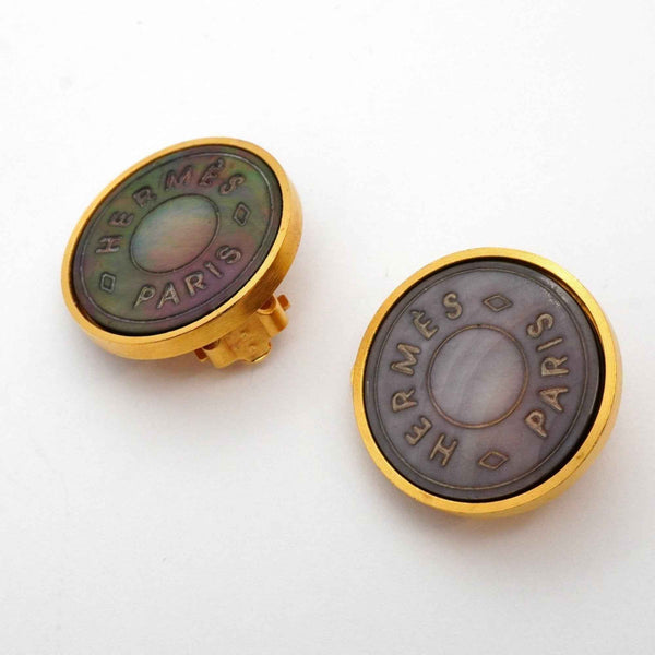 Hermes Serie Earrings, GP Plated Black Shell, Gold, Women\'s, P1342661