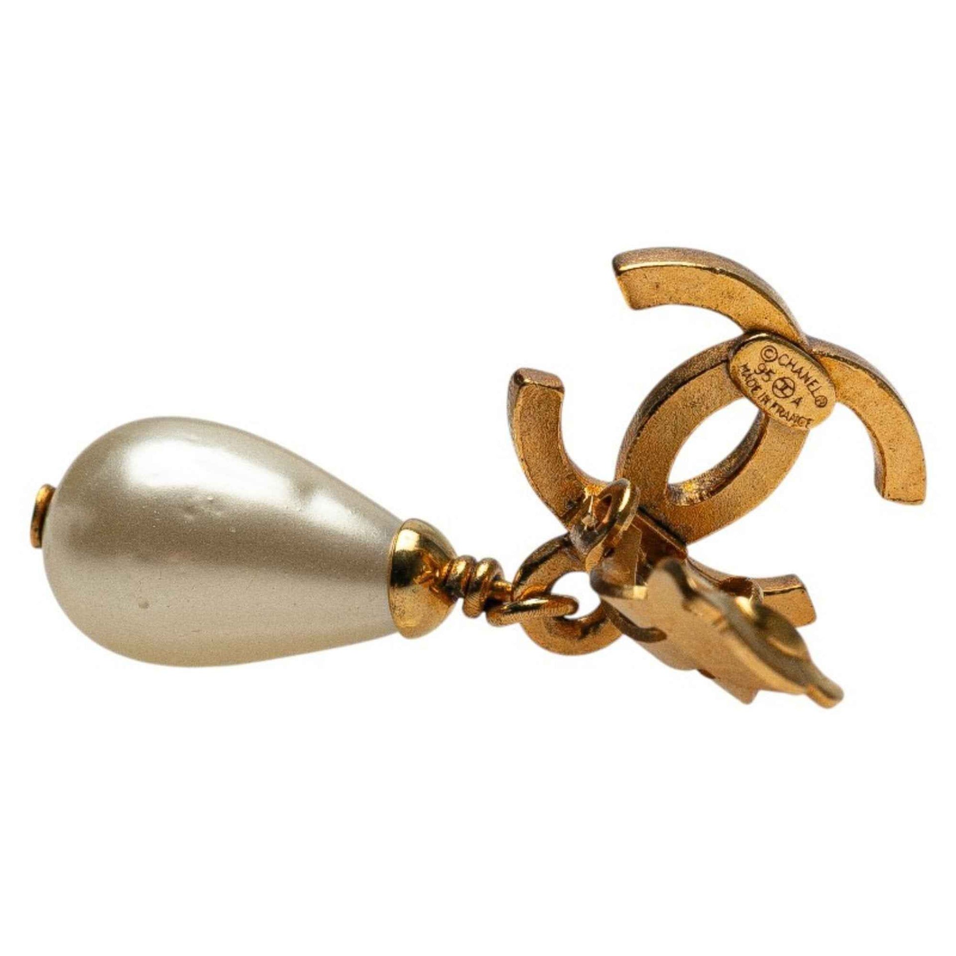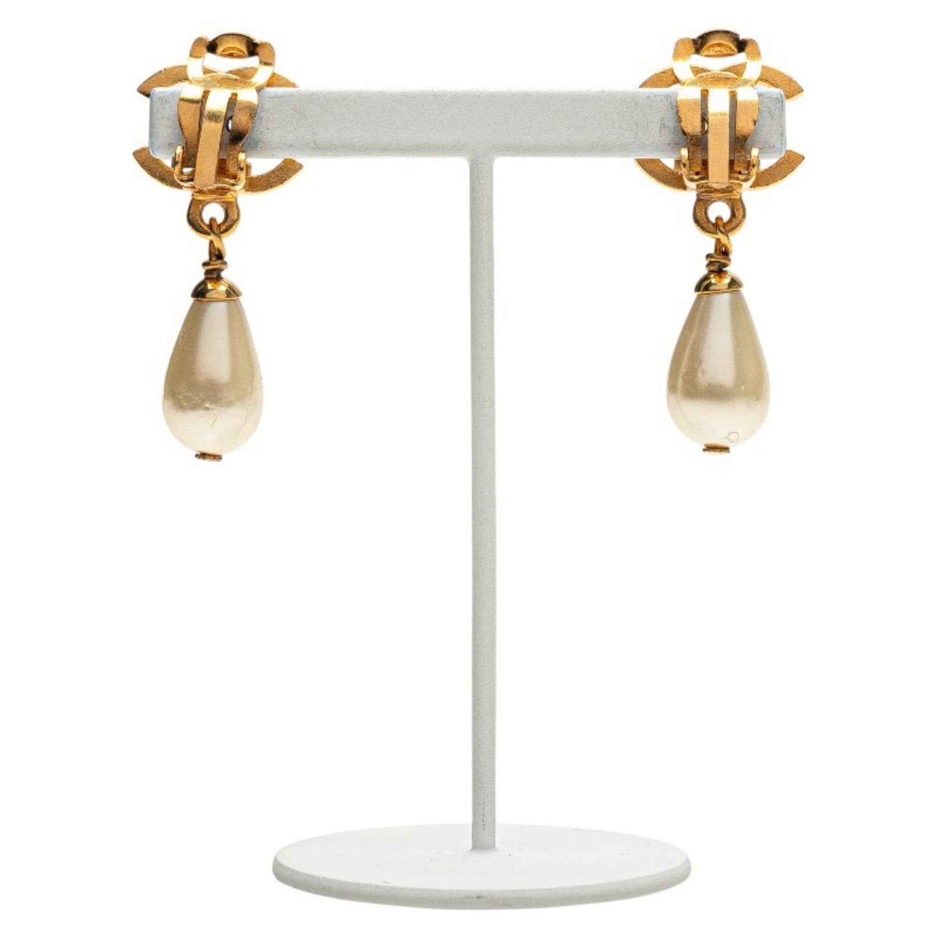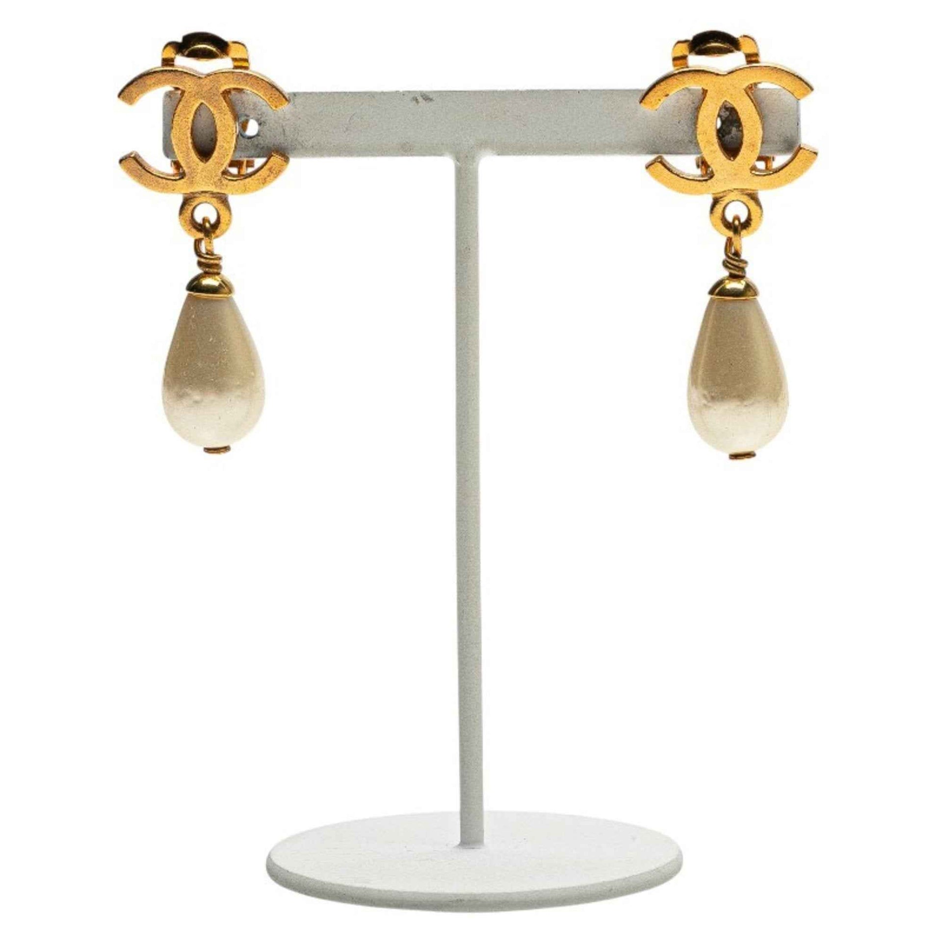 Vintage Chanel Coco Mark Earrings, Gold Plated with Faux Pearls, Women\'s, CHANEL