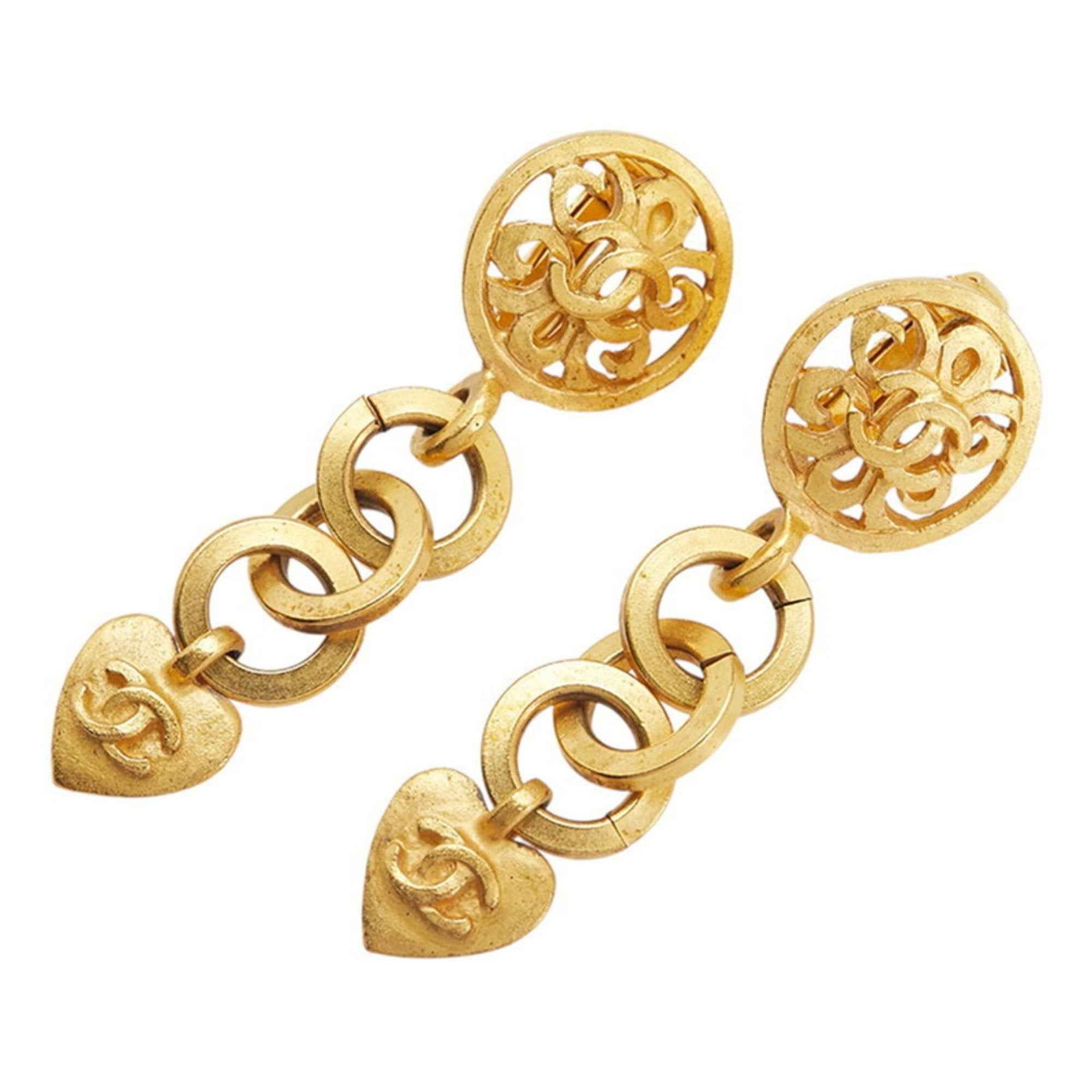 Vintage Chanel Coco Mark Heart Motif Earrings, Gold Plated, Women\'s, CHANEL