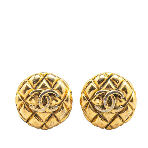 Vintage Chanel Matelasse Coco Mark Earrings, Gold Plated, Women\'s, CHANEL