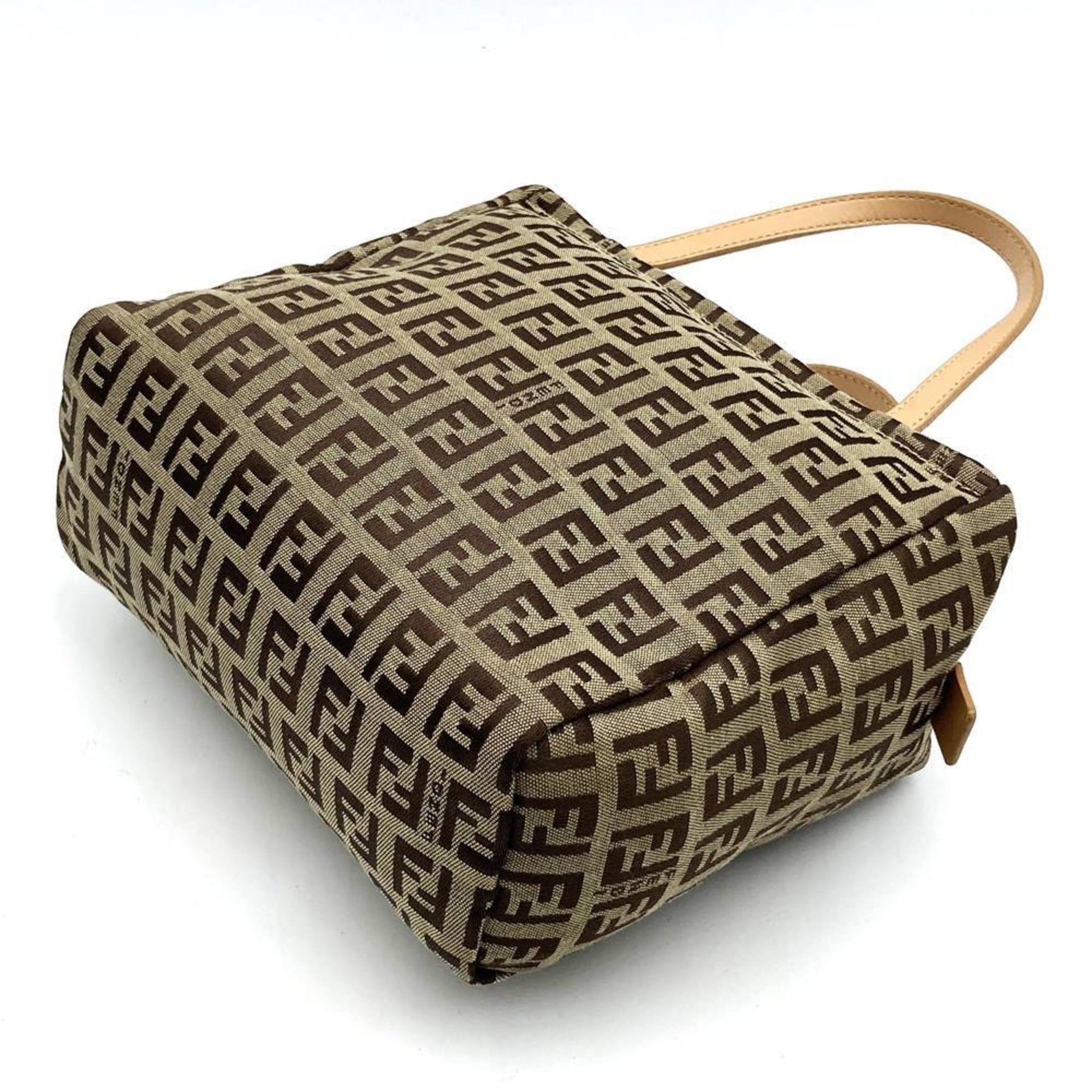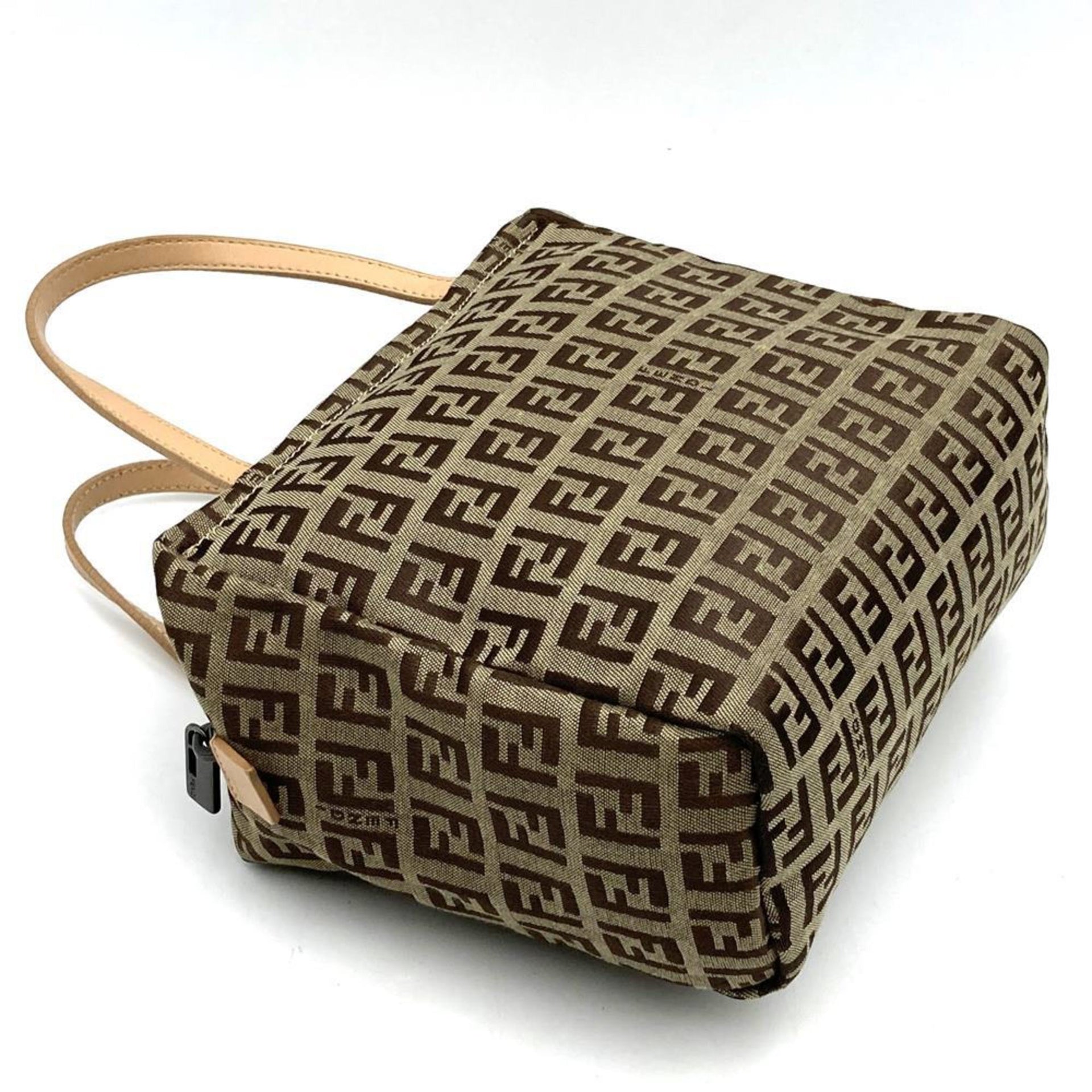 FENDI 2415 8N000 028 Handbag Pouch Zucchino Canvas Leather Beige Women\'s Men\'s