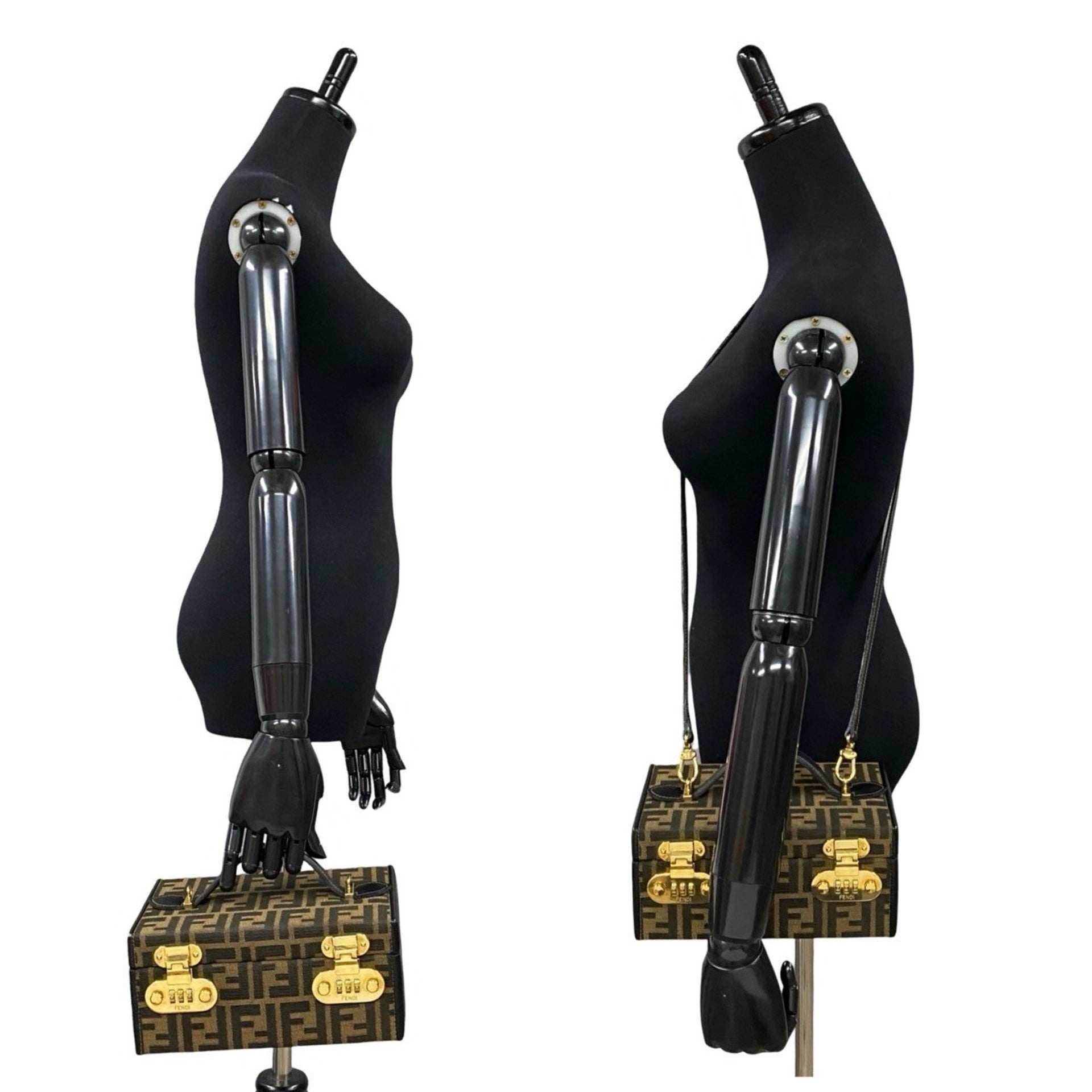FENDI Dial Lock Vanity Bag with Zucca FF Pattern, Canvas and Leather, 2-Way Handbag/Shoulder Bag, Brown, 31472