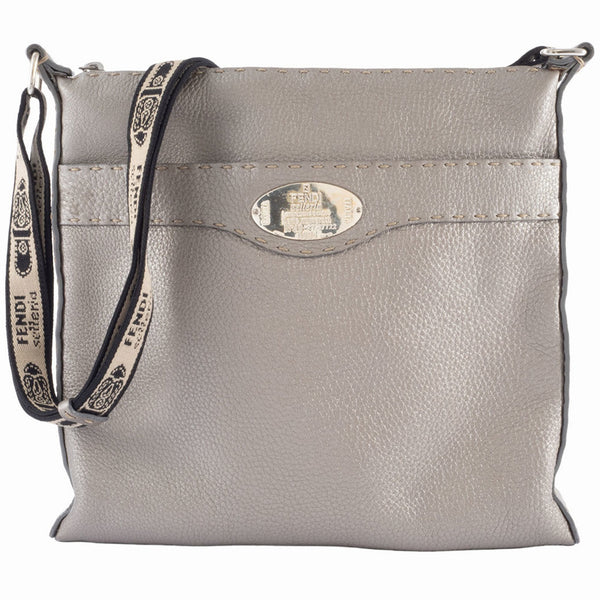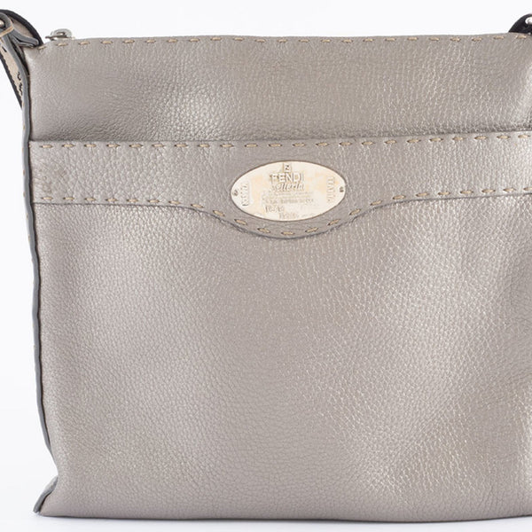 FENDI Selleria Shoulder Bag 8BT109 in Grey Metallic Leather for Women