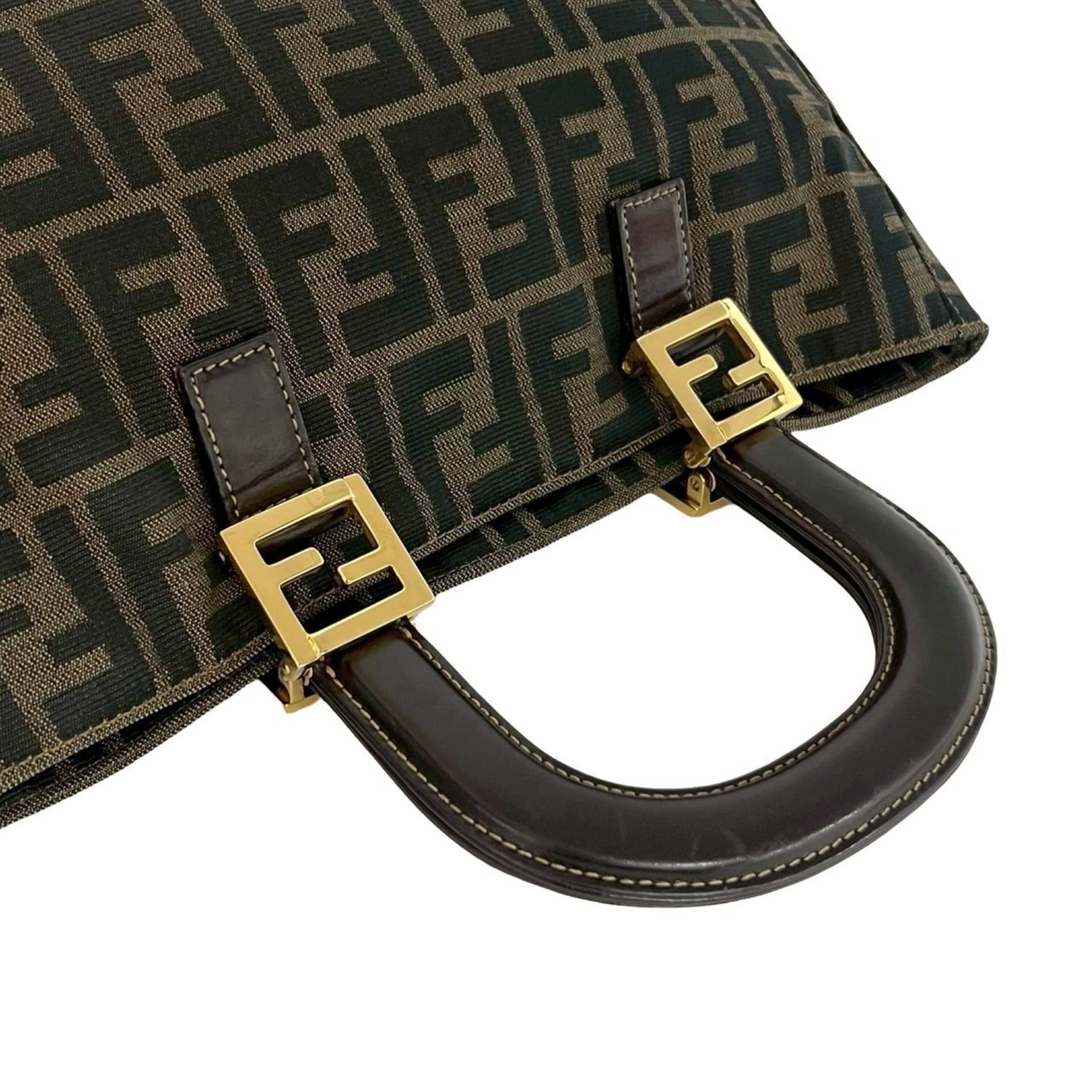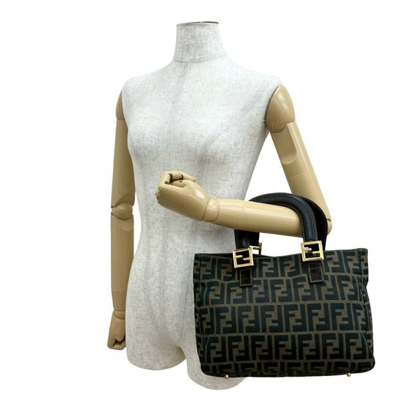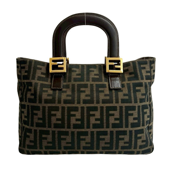 FENDI Zucca FF pattern logo metal hardware canvas and leather handbag mini tote bag brown black 19151