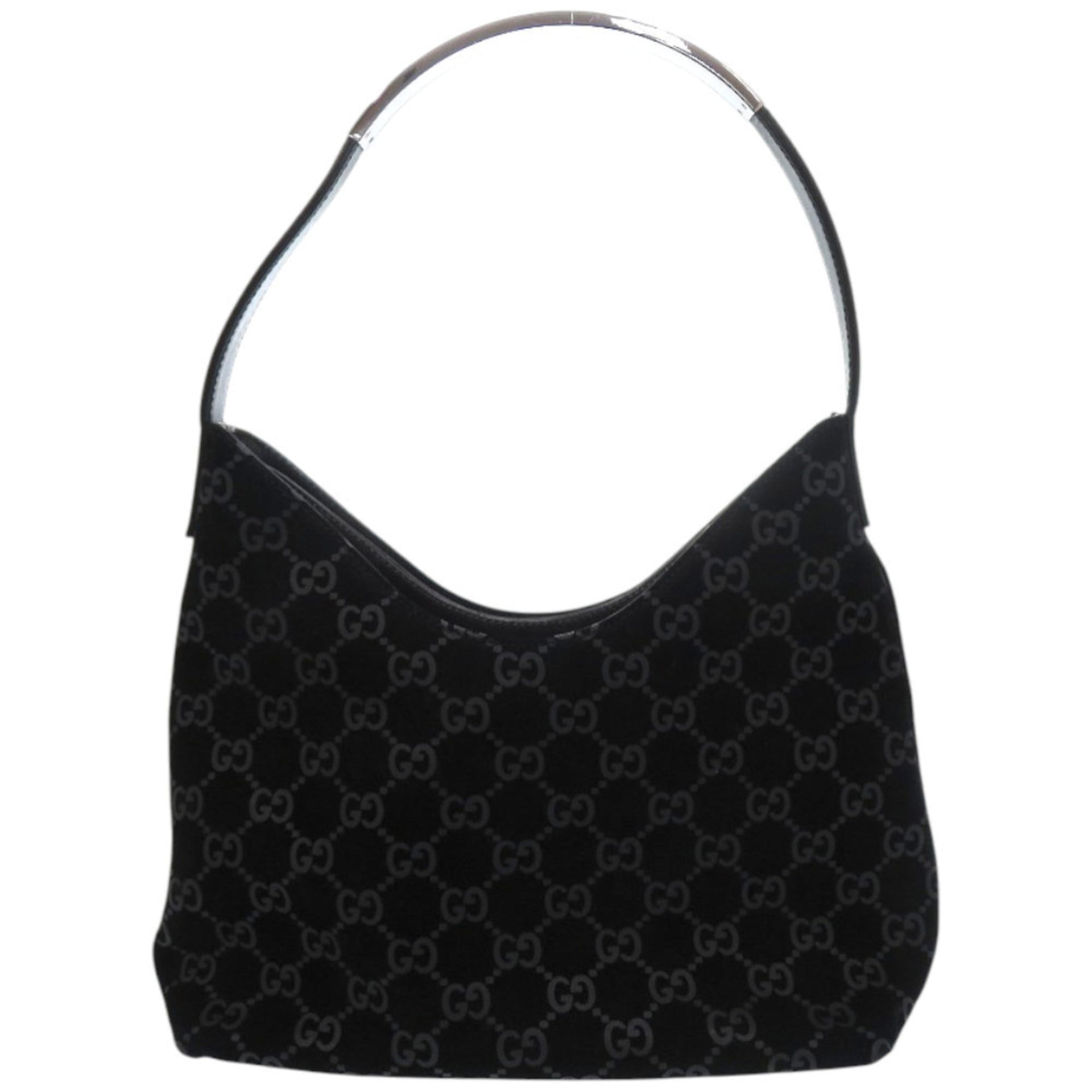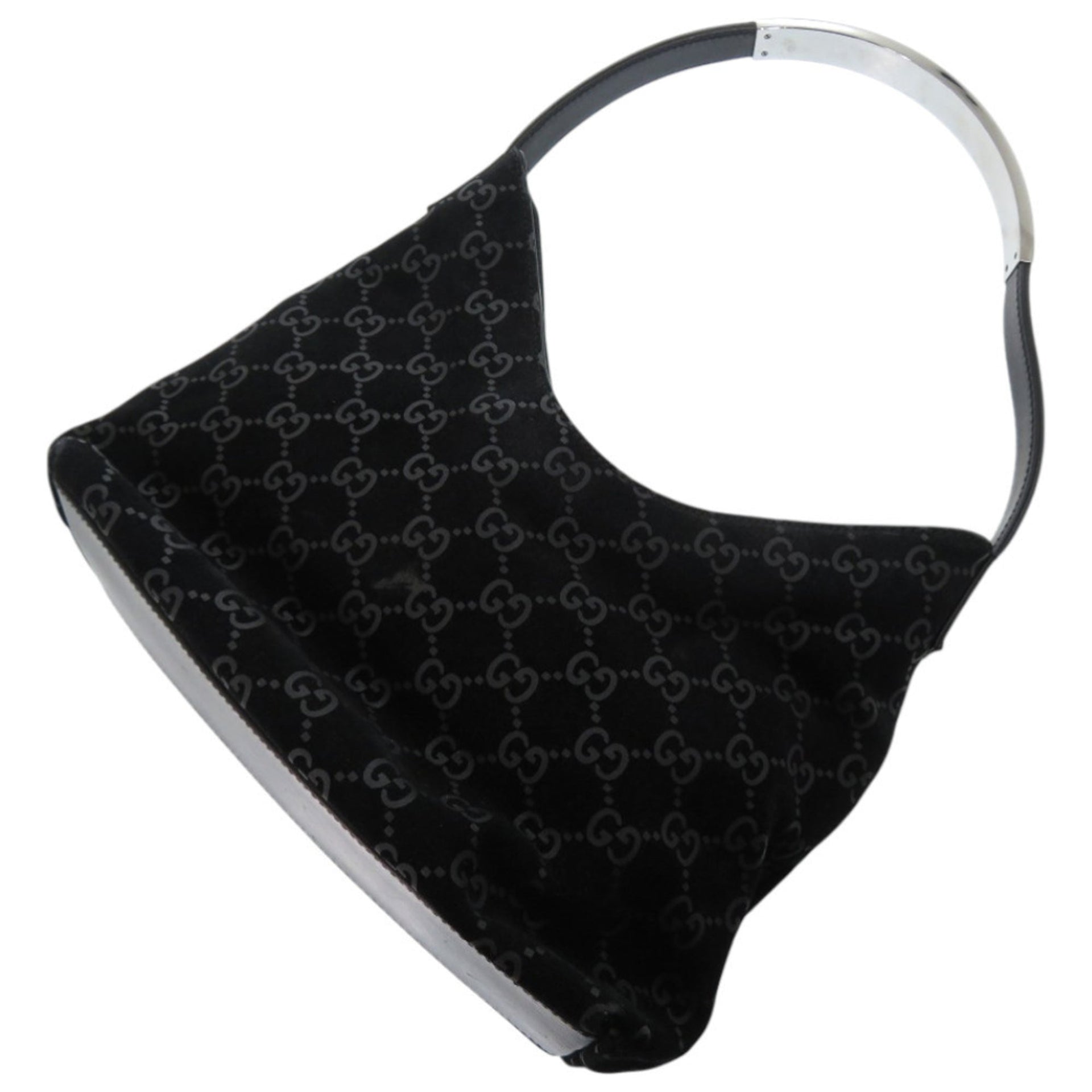 Excellent condition Gucci one-shoulder bag 001 3778 in suede, metal, leather, black with silver hardware. 1869 GUCCI