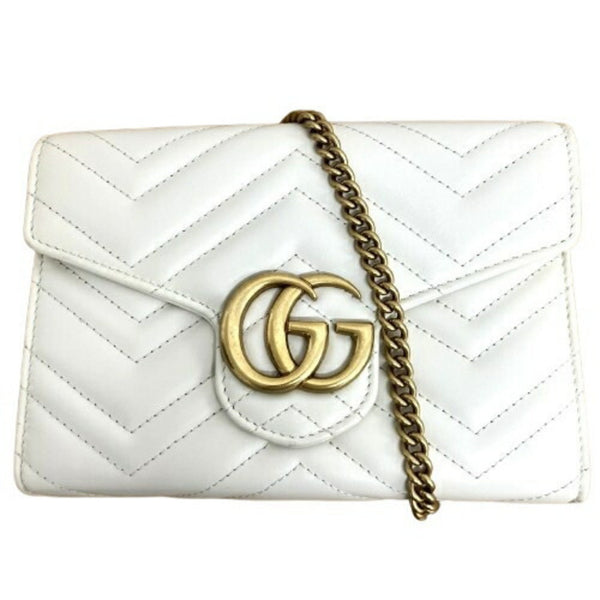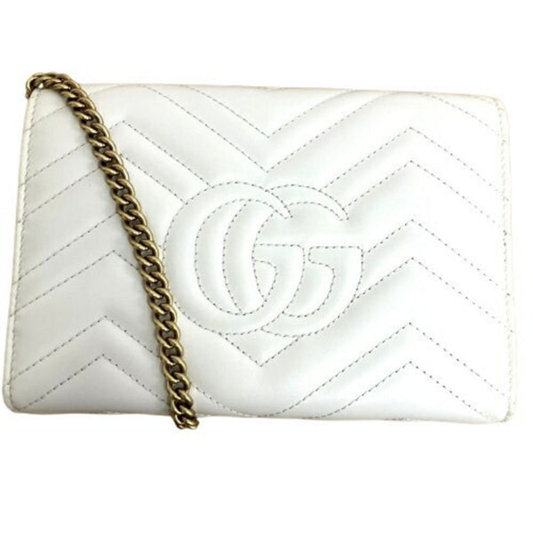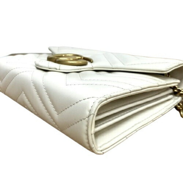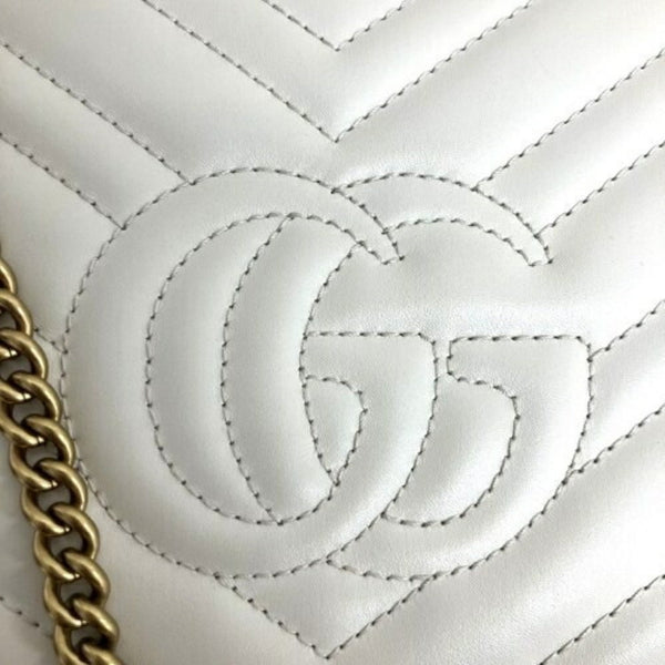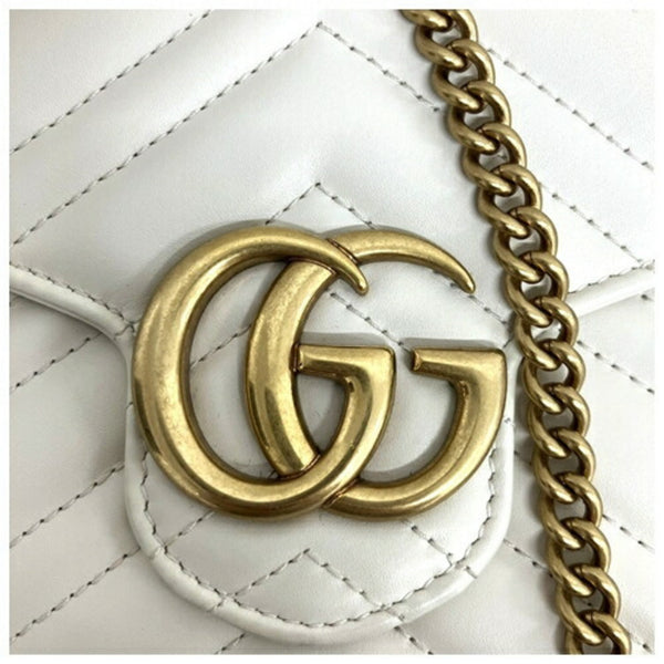 GUCCI 474575 GG Marmont Quilted Chain Shoulder Bag Ivory