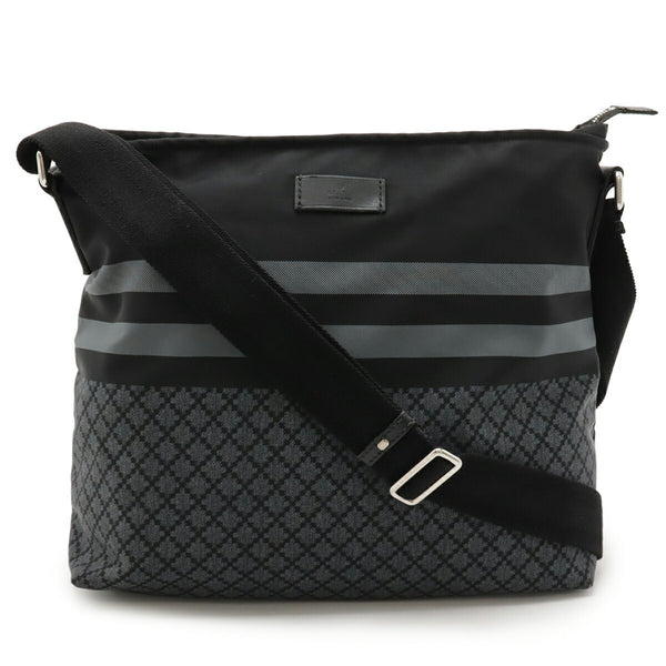 GUCCI Diamante Shoulder Bag, Nylon and Leather, Black Gray, 270410