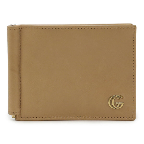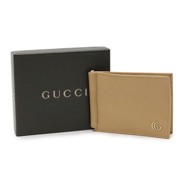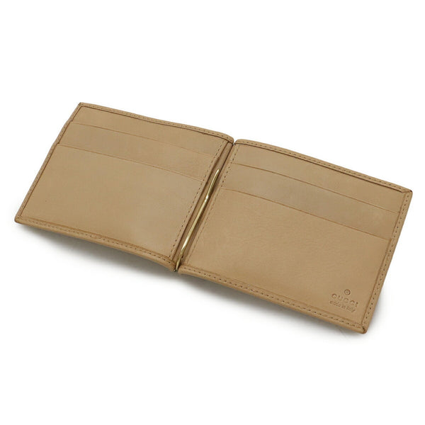 GUCCI Double G Bi-fold Wallet with Money Clip Bill Card Case Business Holder Leather Beige 92765