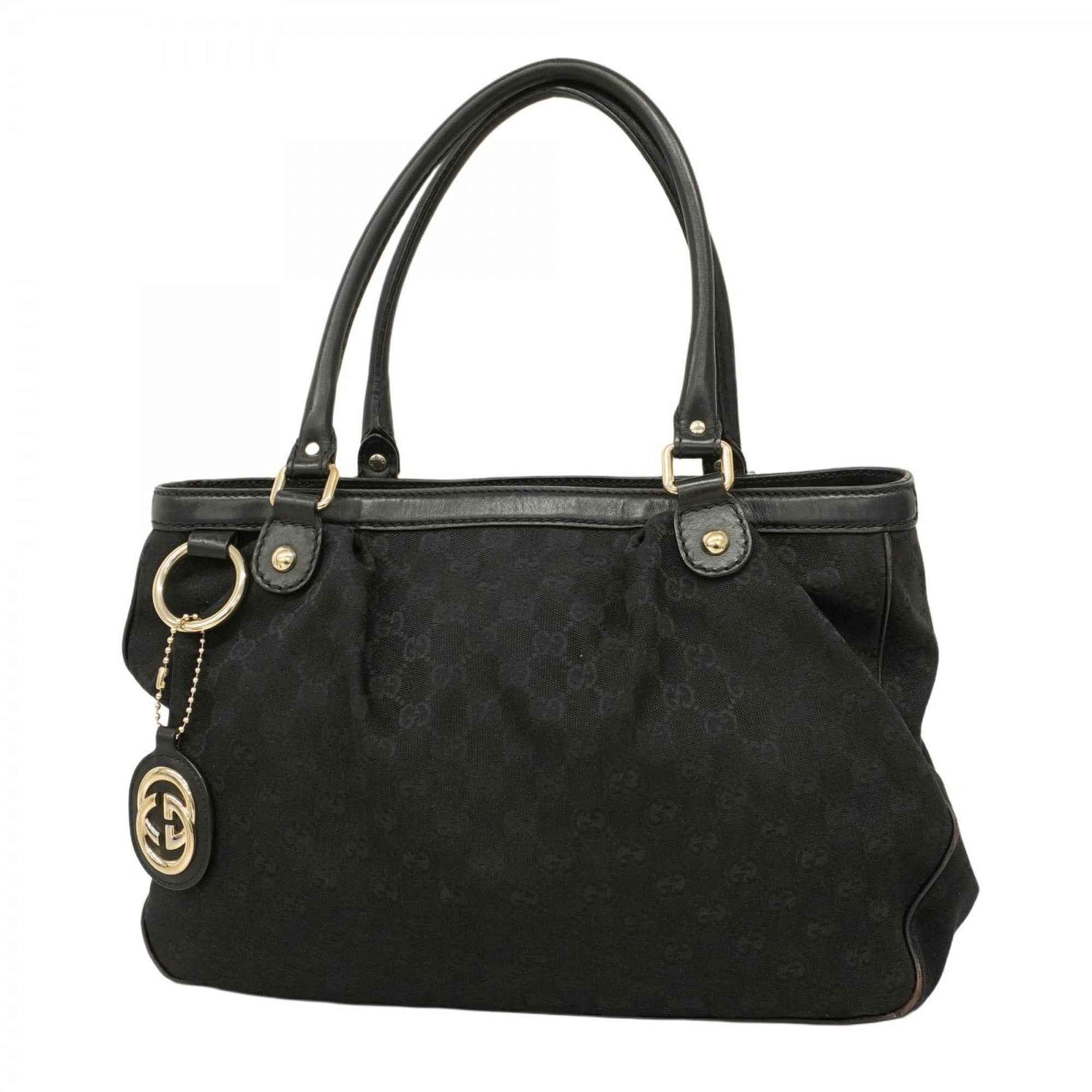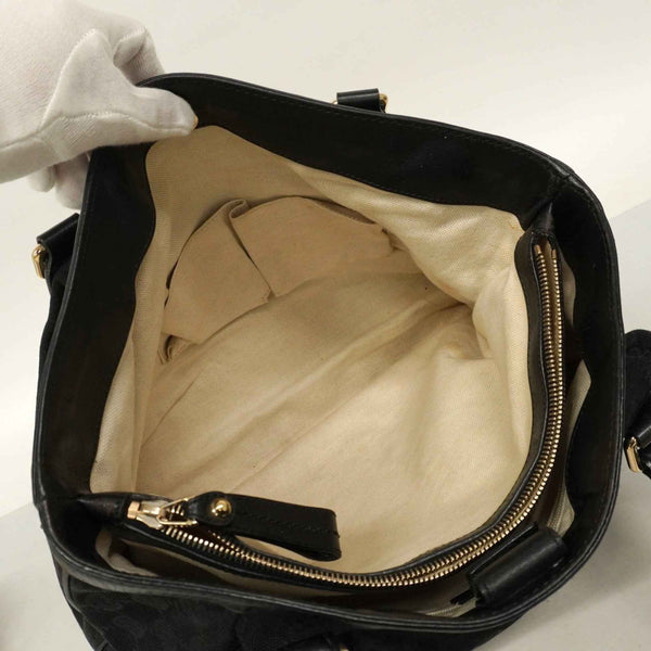 Gucci GG Canvas Handbag 296835 Black Champagne Women\'s