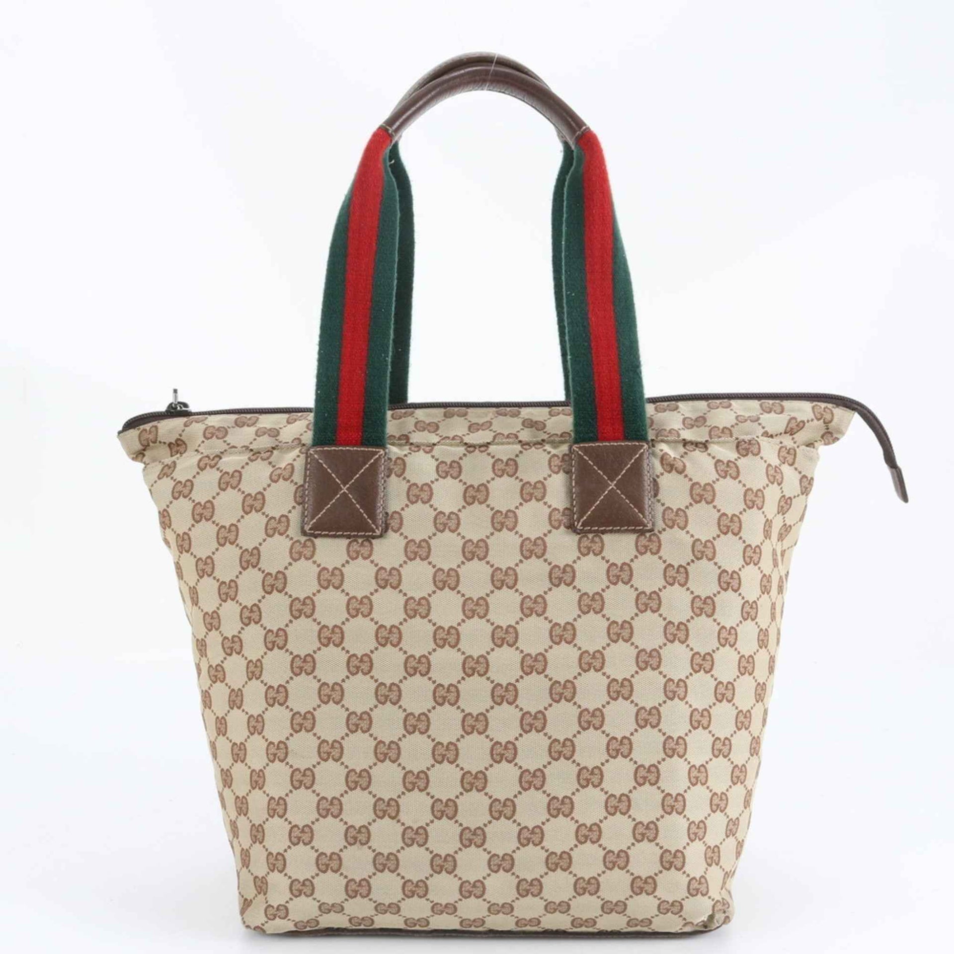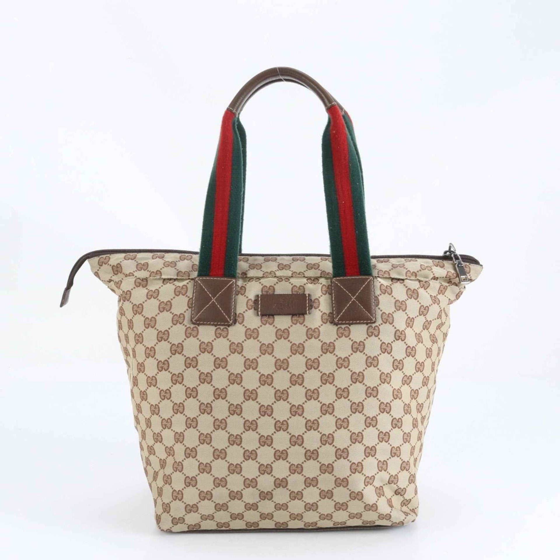 Gucci GG Canvas Sherry Line Leather Tote Bag, Brown, Men\'s, 131231