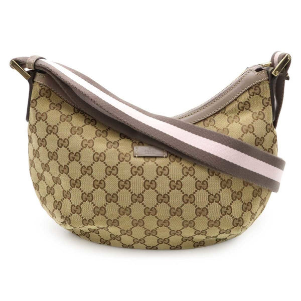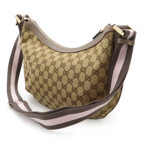 GUCCI GG canvas shoulder bag leather khaki beige greige light pink 181092