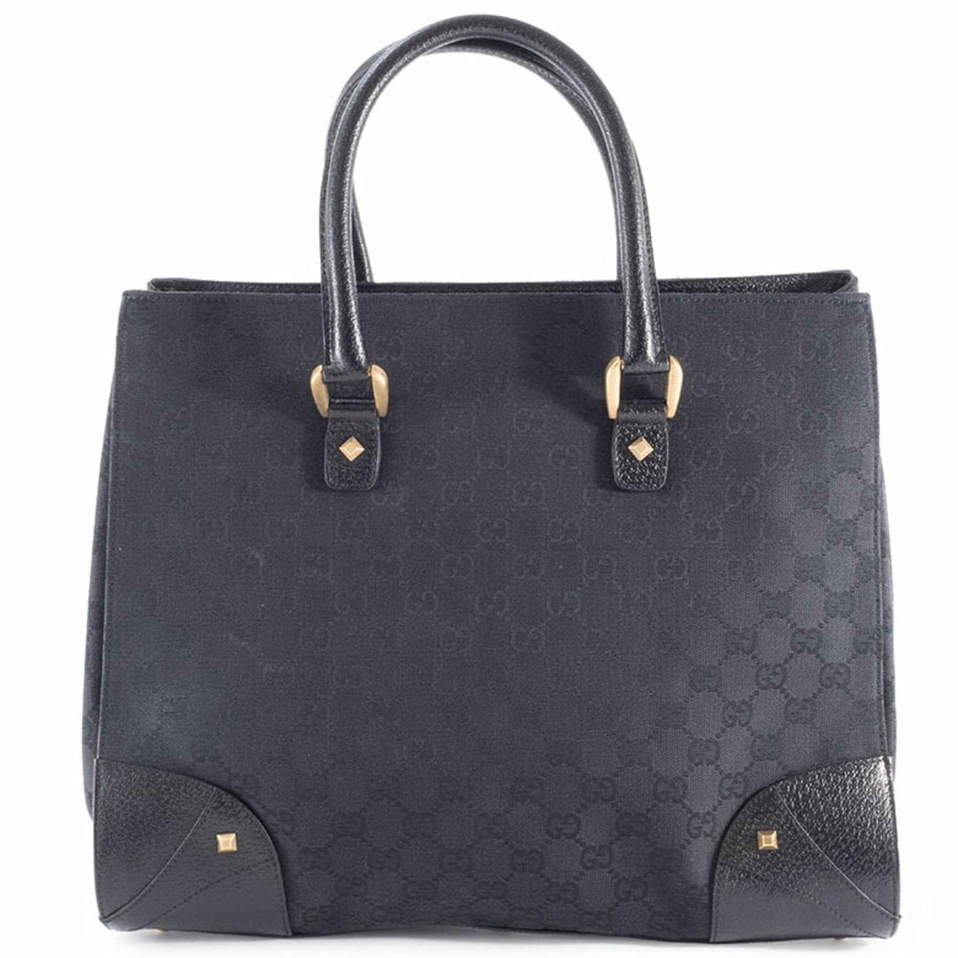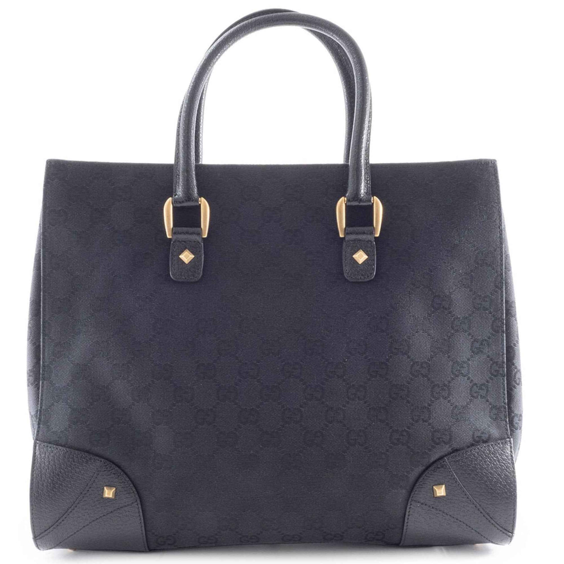 Gucci GG Canvas Tote Bag 120897 in Black Leather with Studs