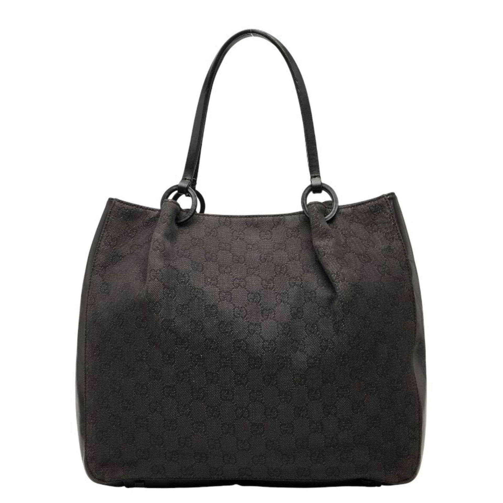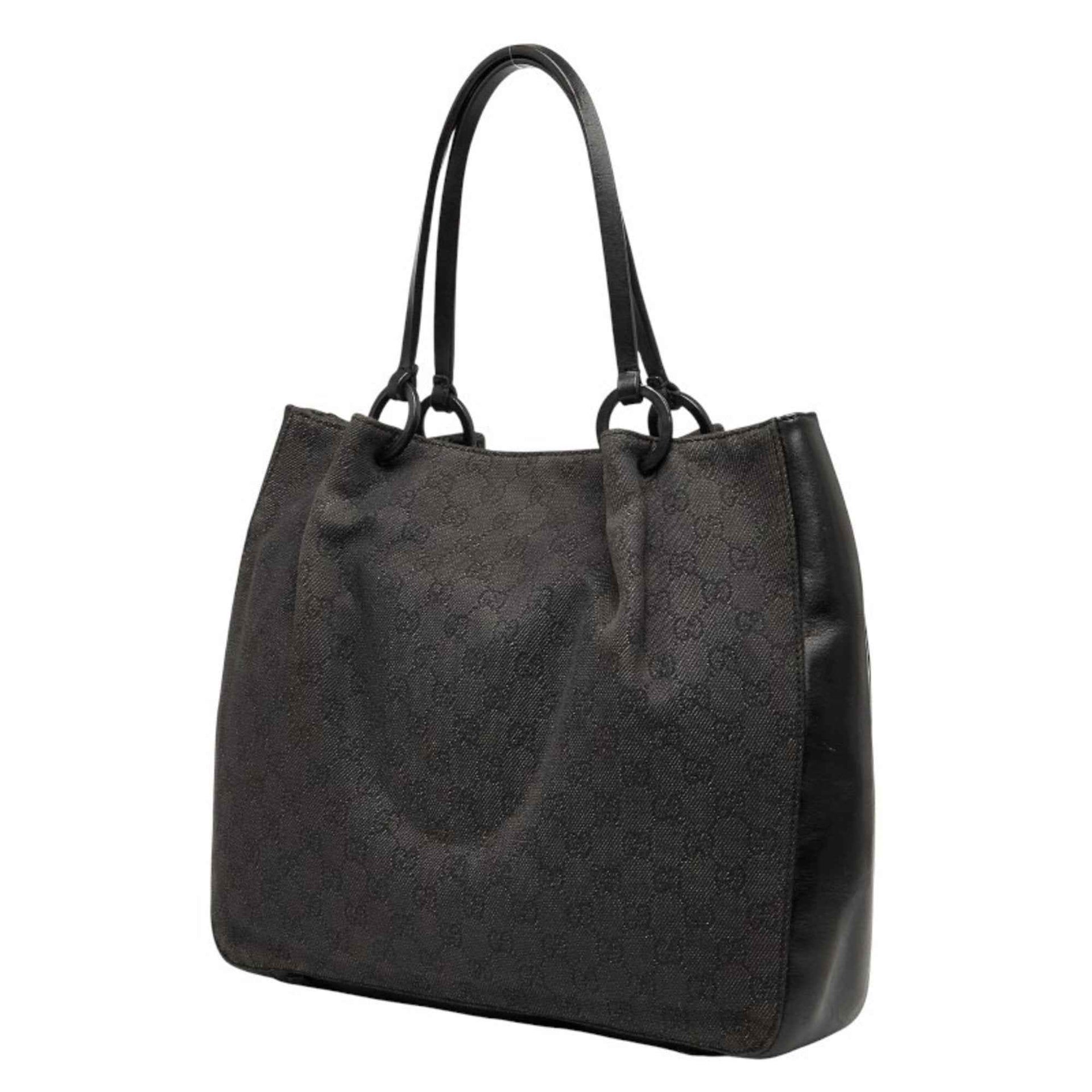 Gucci GG Canvas Tote Bag Handbag 1019220 Black Leather Women\'s GUCCI