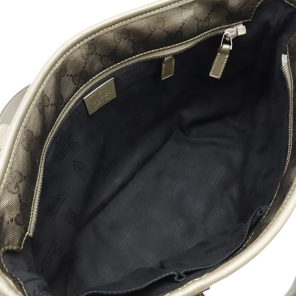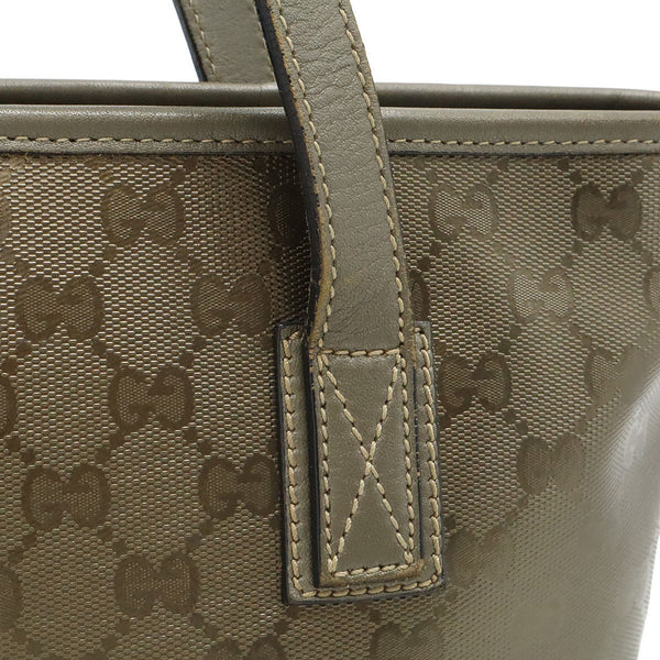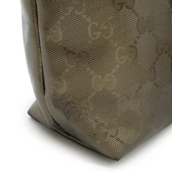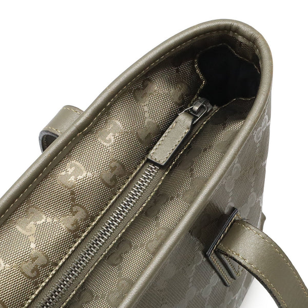 GUCCI GG Imprime Tote Bag Shoulder PVC Leather Metallic Khaki 211137