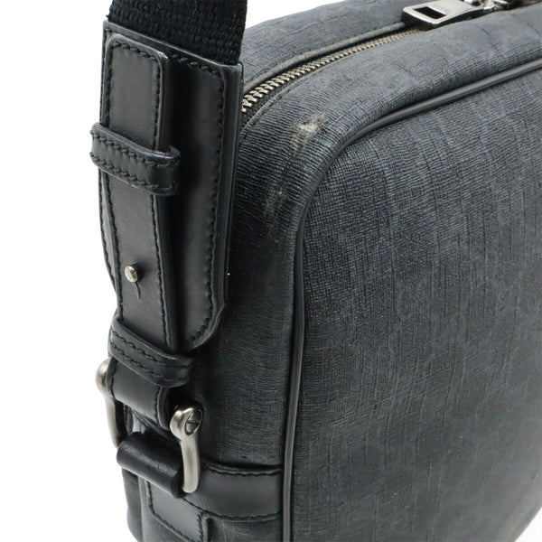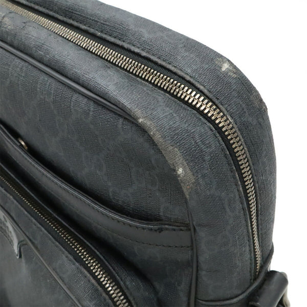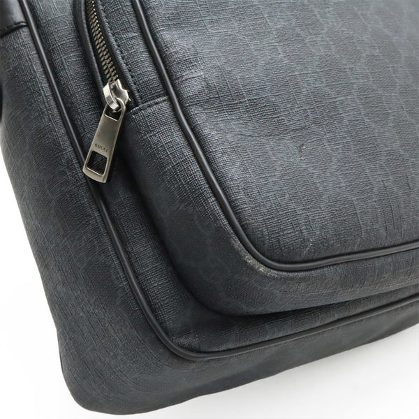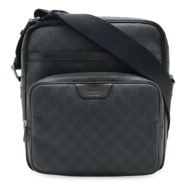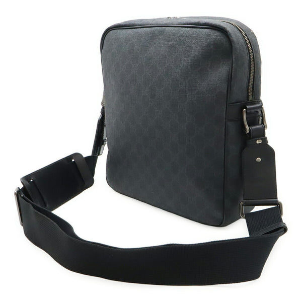 GUCCI GG Supreme Shoulder Bag in PVC and Leather, Black Gray, 322070