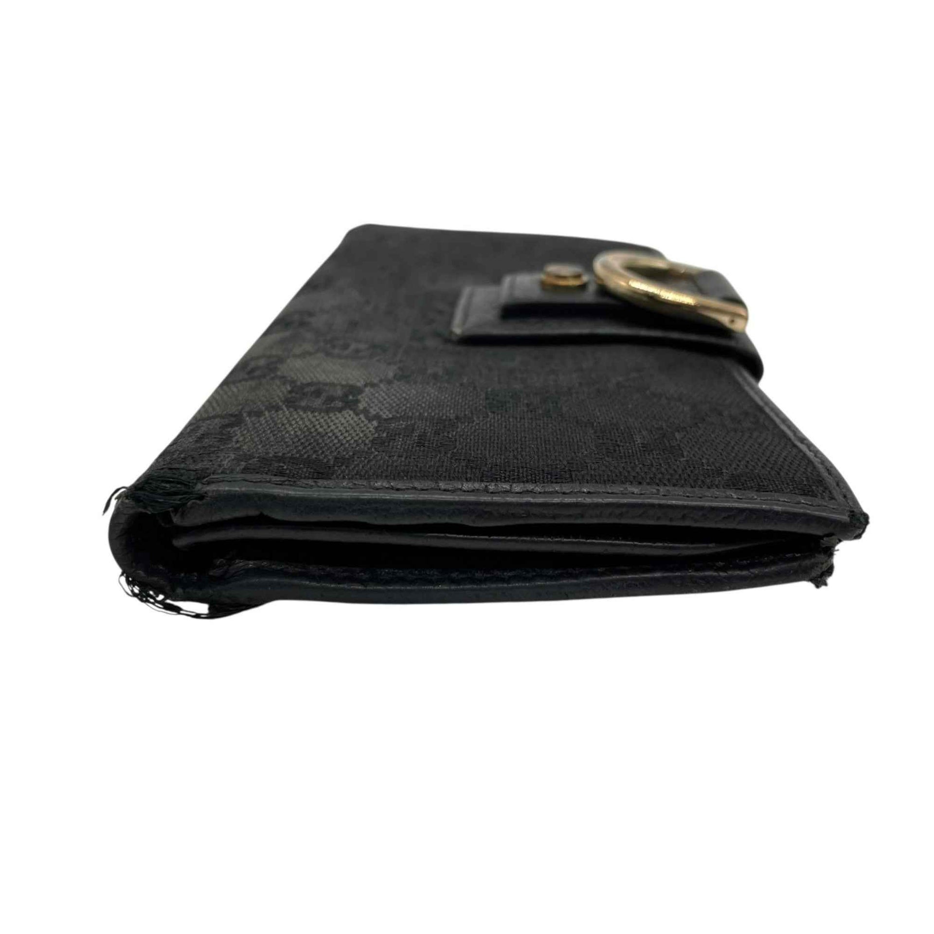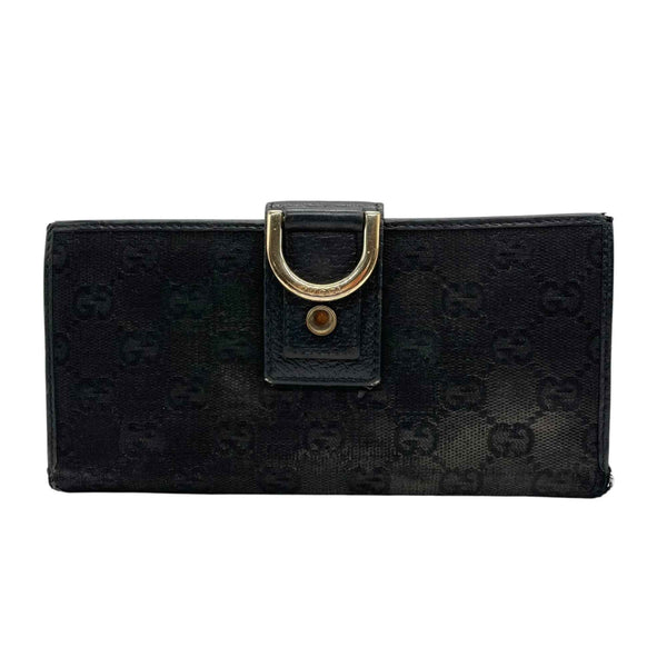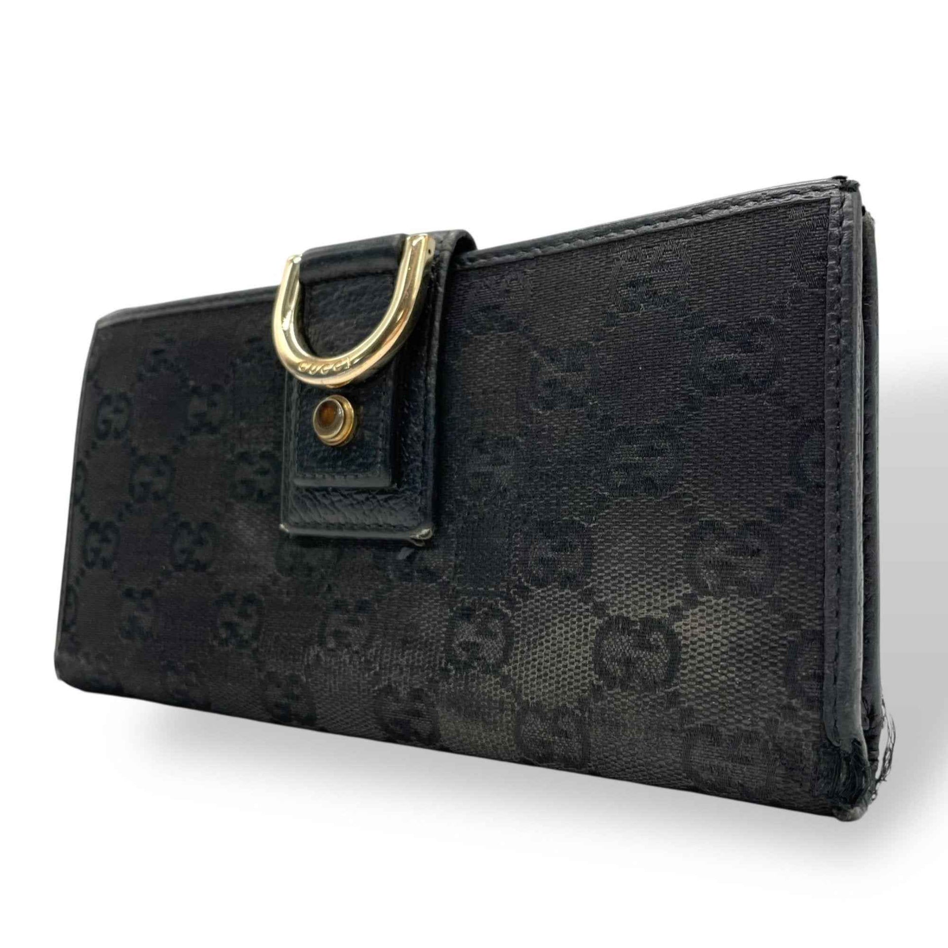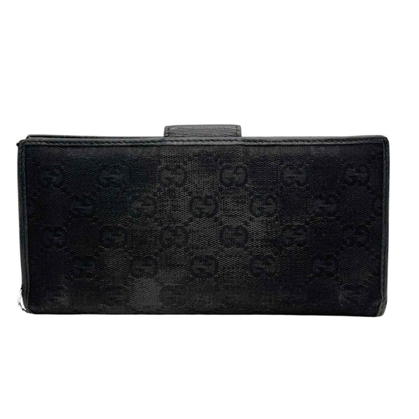 Gucci GUCCI Bifold Long Wallet GG Canvas Black Leather Gold Hardware Pattern Men\'s Women\'s M5